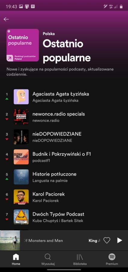 - Ostatnio Popularne – ranking podcastów, które są obecnie na czasie