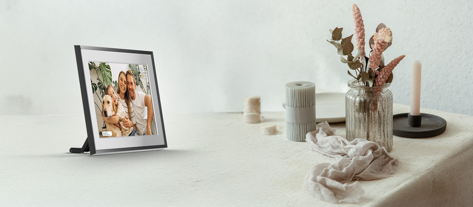 Ramka pozwala zgromadzić pokaźną bibliotekę zdjęć i filmików – oferuje 32 GB wbudowanej pamięci, a także obsługuje karty pamięci microSD do 256 GB. Zaletą dla części użytkowników mogą okazać się dodatkowe funkcje – kalendarz, zegar czy informacje o pogodzie. Dane mogą być pobierane dzięki wbudowanemu modułowi Wi-Fi.
