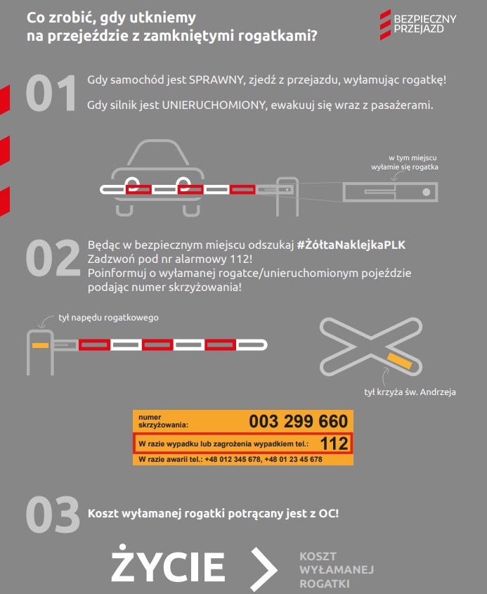 Biuro prasowe upewniło mnie także w tym, że zarówno opadające rogatki, jak i czerwone światło to jasny sygnał, że należy się zatrzymać przed przejazdem. Jednak, gdy kierowca utknie na przejeździe, najważniejszy jest jak najszybszy zjazd z torów, nawet jeśli oznacza to uszkodzenie rogatki. Jeśli chodzi o koszt uszkodzeń PKP PLK informuje, że w przypadku ustalenia sprawcy, firma będzie dochodzić zwrotu kosztów. Koszt wyłamania rogatki najczęściej pokrywany jest z ubezpieczenia OC.