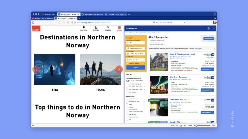 To jeszcze nie wszystko, bo wewnątrz przestrzeni roboczych możemy tworzyć podzbiory w postaci dwupoziomowych grup kart, a także dowolnie organizować sposób wyświetlania stron. Zamiast marnować miejsce na dużych monitorach widescreen, z łatwością podzielimy okno przeglądarki na sekcje.