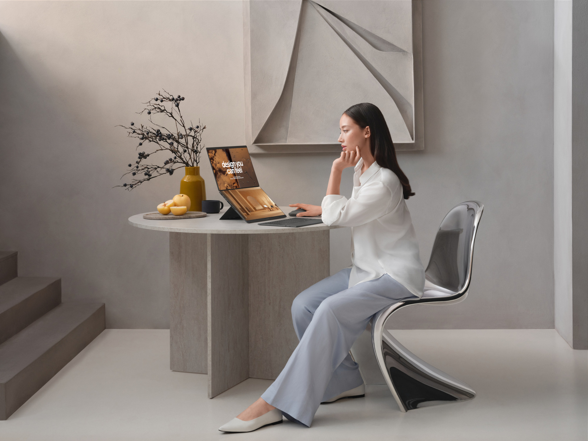 Największe wrażenie spośród zaprezentowanych laptopów robi nowy Asus Zenbook Duo (UX8407AA), którego konstrukcja została w całości wykonana z Ceraluminum, czyli materiału łączącego w sobie cechy ceramiki i aluminium. To solidny, a przy tym mobilny sprzęt, którego charakterystyka zdecydowanie sprzyja produktywności.