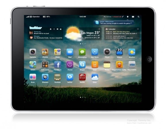 Wielu żałuje, że w systemie iOS nie ma widgetów. Widgety to małe aplikacje będące skrótami do najczęściej używanych funkcji urządzeniach, takich jak pogoda, zegar, portale społecznościowe, notowania giełdowe itp. Możemy je znaleźć prawie w każdym systemie operacyjnym na tablety i smartfony, z wyjątkiem iOS i Windows Phone 7. Jako że ten ostatni jest dopiero we wczesnej fazie rozwojowej – nie wyrzucamy mu braku funkcji, które u konkurencji są standardem. Ale dlaczego iOS nie ma widgetów? Czy Apple uważa, że motto „There’s an app for that” można zastosować do każdego aspektu używania iUrządzenia? Powyższe zdjęcie to wizualizacja (zapewne wykonana przez jakiegoś uzdolnionego fana) przedstawiająca ekran główny iPada z widgetami. Wygląda nieźle? Zgadzam się.