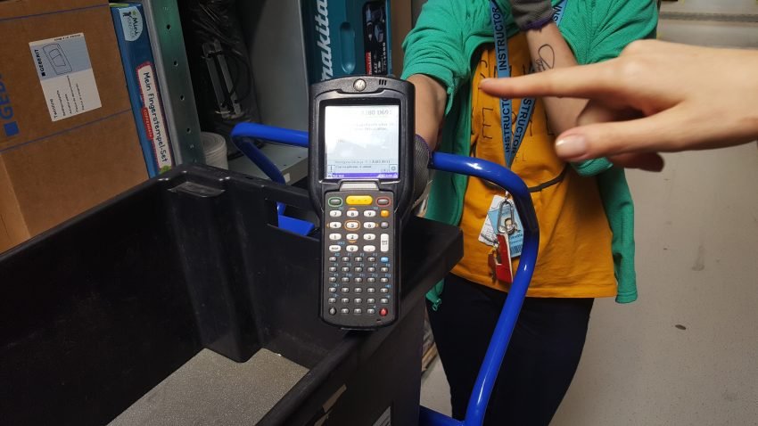 No i właśnie kliknięcie przycisku „Zamawiam” uruchamia całą tę złożoną maszynę. Pracownik kompletujący zamówienie dostaje informację na skaner, gdzie znajduje się najbliższy zamawiany towar. Skaner podaje, w którym regale, rzędzie i półce jest dokładnie ten przedmiot. Gdy zostanie on pobrany i zeskanowany, pracownik odczytuje informacje o miejscu, w którym zlokalizowany jest kolejny przedmiot i tak aż do końca zamówienia. Ważne jest to, że jest to najbliższe możliwe miejsce, więc pracownicy wcale nie musza chodzić z jednego końca hali na drugi. Po skompletowaniu zamówienia pudełko z towarami kładzione jest na taśmę i jedzie do kolejnego punktu swojej podróży.