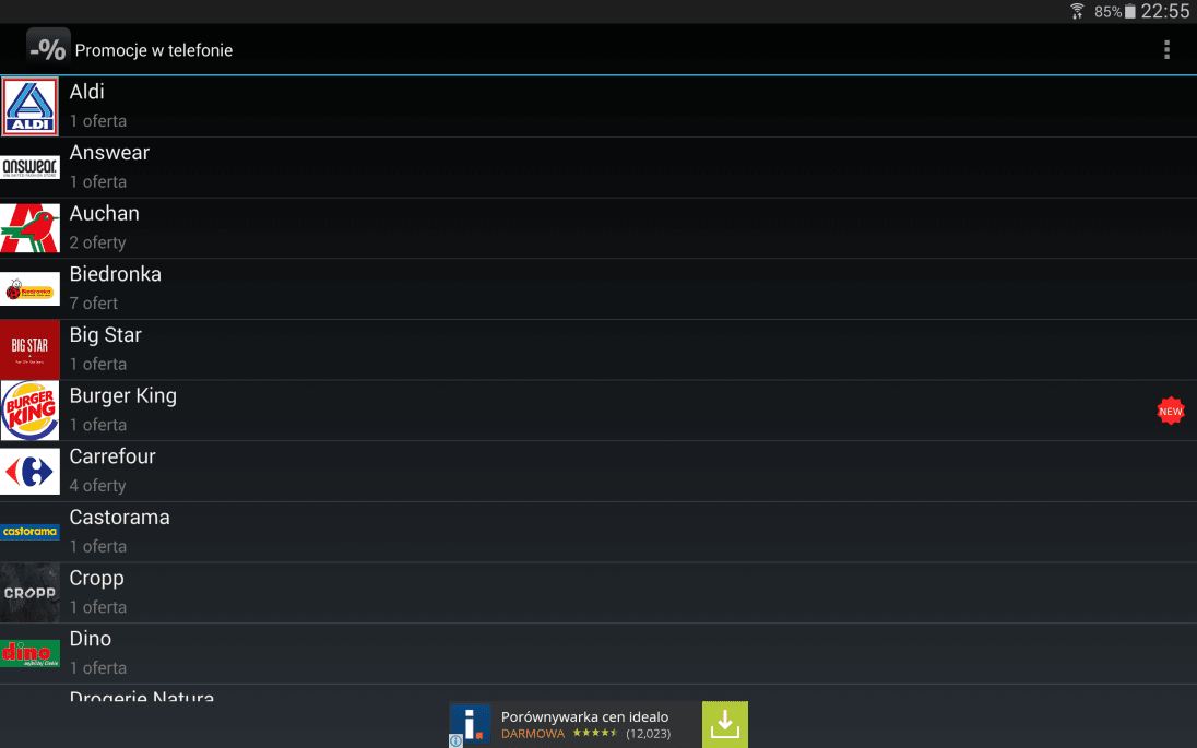 Nie dajcie się zmylić nazwie. Aplikacją ta działa bowiem świetnie także na ekranie tabletu. Ba, gazetki reklamowe wyglądają na nim nawet lepiej niż na telefonie. Jak mogliście zauważyć, ostatnio przygotowuję dla was cotygodniowe zestawienie promocji na tablety. Aplikacja ta ułatwia mi zapoznanie się z gazetkami reklamowymi sklepów mających w ofercie elektronikę. Poza tym znajdziemy tu supermarkety i sklepy odzieżowe. Baza sklepów jest na bieżąco aktualizowana i ciągle rośnie.