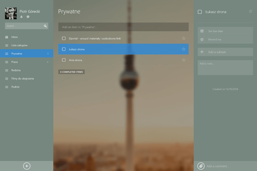 Wunderlist używam od niedawna, ale w związku z tym, że staram się być aktywny na wielu frontach, dzisiaj nie wyobrażam sobie pracy bez tego narzędzia, pozwalającego tworzyć zadania i je kategoryzować. Choć czasem lepiej nie wiedzieć ile mamy jeszcze do zrobienia… Zadania można tworzyć, otwierać, kończyć i dodawać do nich notatki czy opisy. Kiedyś korzystałem ze zwykłych checklist w OneNote, ale funkcjonalność Wunderlist jest dużo szersza, a samo narzędzie bardziej intuicyjne. Aplikacja działa również w przeglądarce.