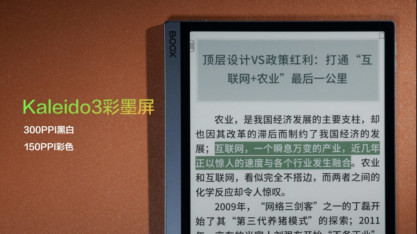 Najważniejszym elementem Onyx BOOX Tab 10C Pro jest wyświetlacz E-ink Kaleido 3. Ekran mierzy 10,3 cala i jego rozdzielczość w skali szarości wynosi 2480 x 1860 pikseli. Kiedy urządzenie przełącza się w tryb kolorowy (a dokładniej – 4096 kolorów) rozdzielczość spada o połowę do 1240 x 930 pikseli.