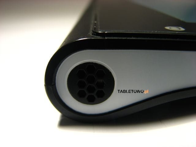 Zaokrąglona cześć grzbietowa pokryta jest gumowaną okładziną. To pomaga w pewnym trzymaniu urządzenia. Powierzchnia jednak jest karbowana i również troskam się o wygląd wgłębień po dłuższym czasie. Obudowa jest czarna jak widać na zdjęciach. Boki są błyszczące, białe, podobno będą dostępne różne wersje kolorystyczne.