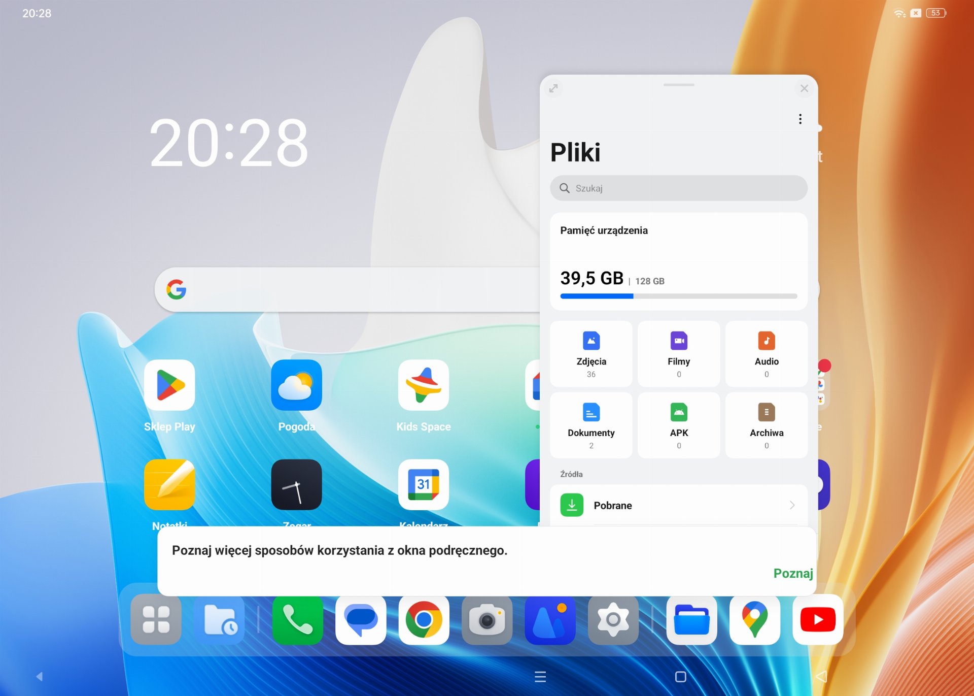 Na samym końcu części poświęconej działaniu tego urządzenia warto na moment pochylić się nad tematem systemu operacyjnego i tego, jakie oferuje funkcje, które pomogą wykorzystać potencjał dużej przekątnej ekranu, a także przydadzą się w codziennym użytkowaniu. To oczywiście nie jest pierwszy tablet na naszym rynku, który działa pod kontrolą Color OS, dlatego skupię się tylko na kilku wybranych funkcjach.