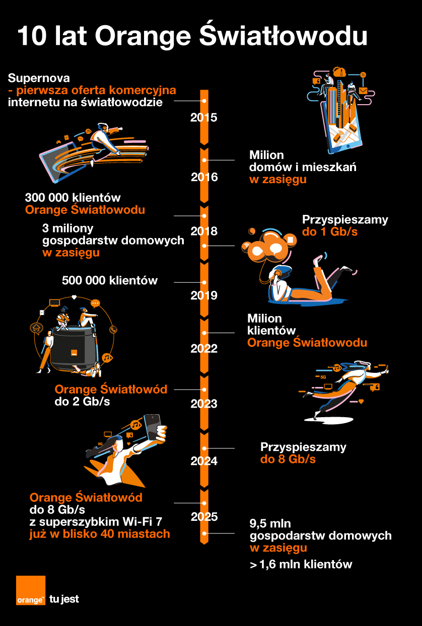 Operator ujawnił też, że 18 grudnia 2024 roku był rekordowym dniem pod względem przyłączeń, ponieważ tego dnia Orange Światłowód zyskał ponad 2200 klientów. Z kolei pierwszy klient, u którego podłączono internet o prędkości do 8 Gbit/s (na warszawskim Bemowie), przygotował dla pracowników… tort.