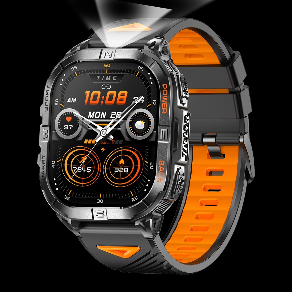 Smartwatch Rogbid Apex K ma bowiem obudowę o szerokości 44,8 mm i grubości 13,8 mm, której niestraszna woda (odporność do 5 ATM), upał, zimno i pył, a do tego oferuje obsługę pięciu systemów lokalizacyjnych (GPS, Glonass, Galileo, Navic i Beidou). Ponadto na jego pokładzie, a konkretniej na górnej krawędzi, jest latarka LED, która może przydać się po zmroku, jeśli trening się przeciągnie.