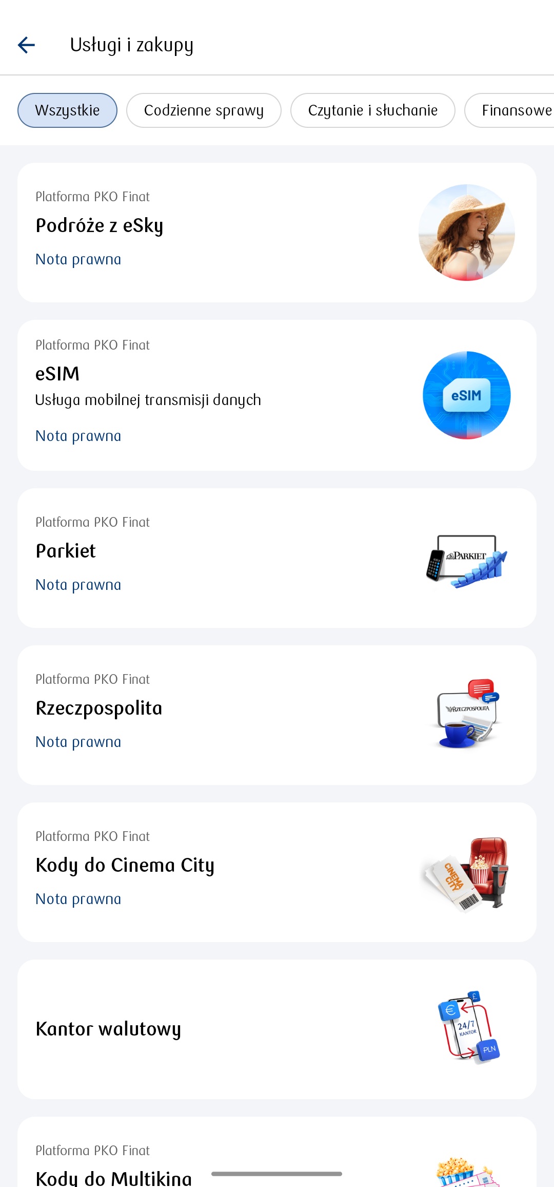 Warto wspomnieć, że PKO BP uzupełniło też listę ofert specjalnych. W zakładce Usługi i zakupy klienci znajdą 5-procentowy rabat na pakiety dynamiczne Lot + Hotel: „Wakacje” i „City Break” w eSky.pl. Przypomnę, iż ten znany bank sukcesywnie rozszerza kategorię usług dodatkowych. W lutym 2025 roku do listy ofert PKO BP dołączyły subskrypcje Rzeczpospolitej i Parkietu, ale w sekcji Usługi i zakupy znajdziecie znacznie więcej, w tym kody do kin, Legimi, Onet Premium czy Canal+ online.