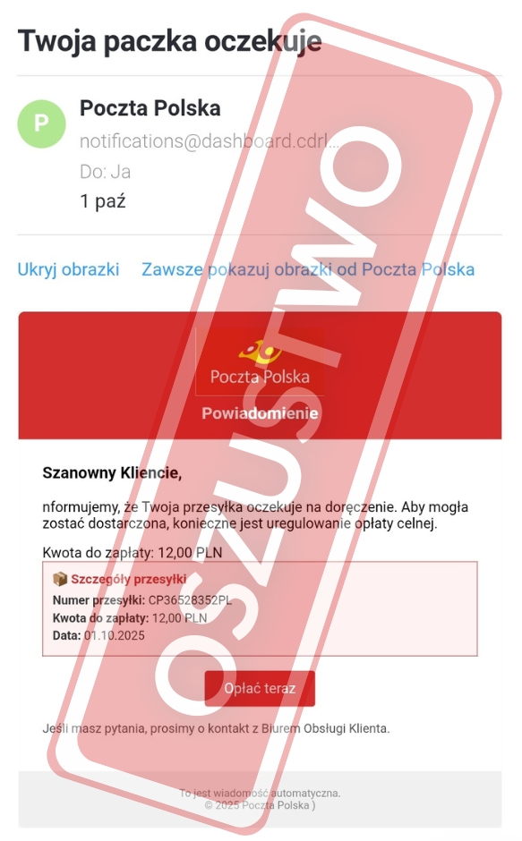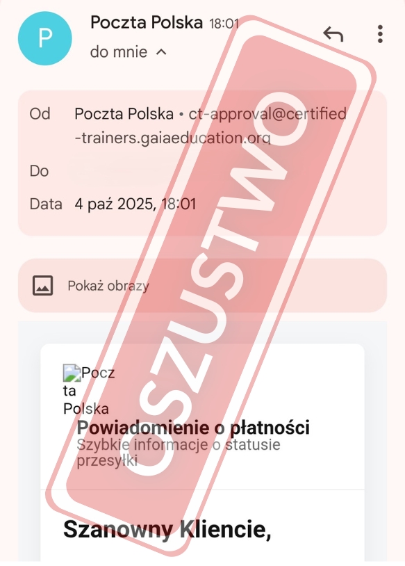 Poczta Polska ostrzega przed fałszywą wiadomością e-mail