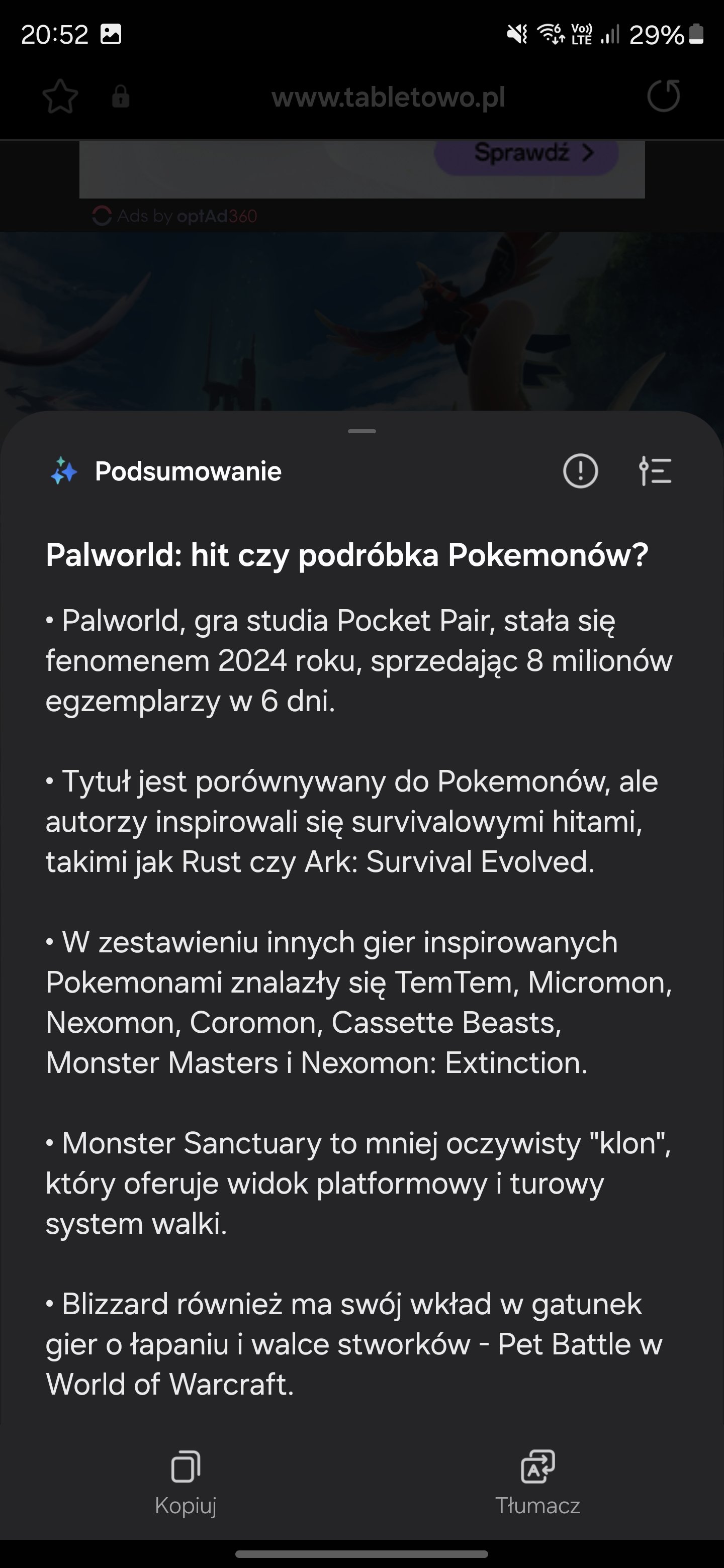 Drugi przykład to rozważania Bartka na temat hitowego tytułu Palworld. Tutaj też mechanizm samsungowy w mojej opinii poradził sobie najlepiej, przy czym nie uniknięto wtrącenia słowa w obcym języku (czego nie ma w tekście, który był podsumowywany).