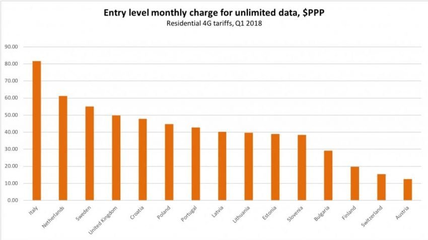 Firma Point Topic porównała ceny pakietów LTE w 28 krajach Unii Europejskiej, Norwegii i Szwajcarii. Zestawienie obejmuje tylko i wyłącznie taryfy dostępne bez telefonu i te w pakietach z modemem.