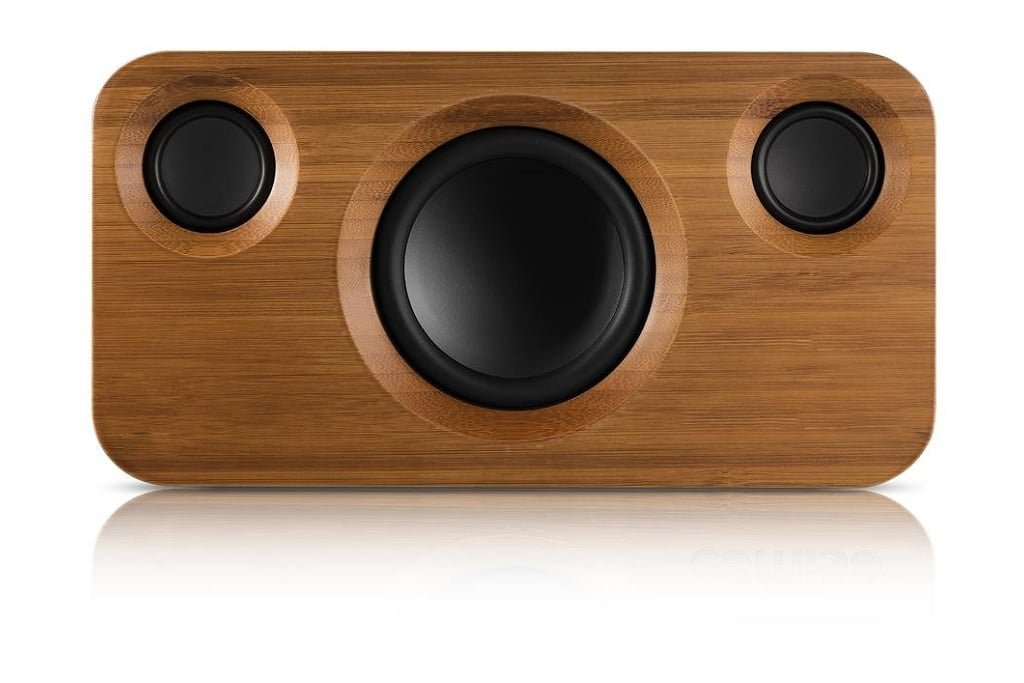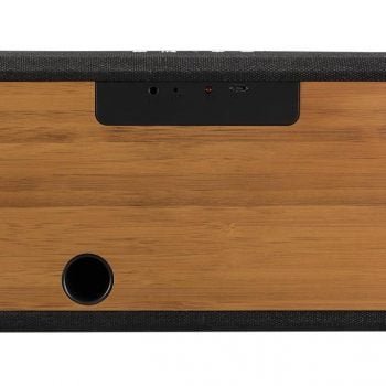 Oczywiście nie wszyscy podzielą moje zdanie, lecz prawdopodobnie każdy przyzna, że sprzęt jest naprawdę ładny. Przedni i tylny panel pokrywa drewno bambusowe, natomiast pozostałą powierzchnię czarna tkanina. Design jest minimalistyczny, nieagresywny i zwyczajnie przyjemny do oka, a jednocześnie również uniwersalny, dzięki czemu sprzęt powinien idealnie wpasować się w każde pomieszczenie i miejsce.