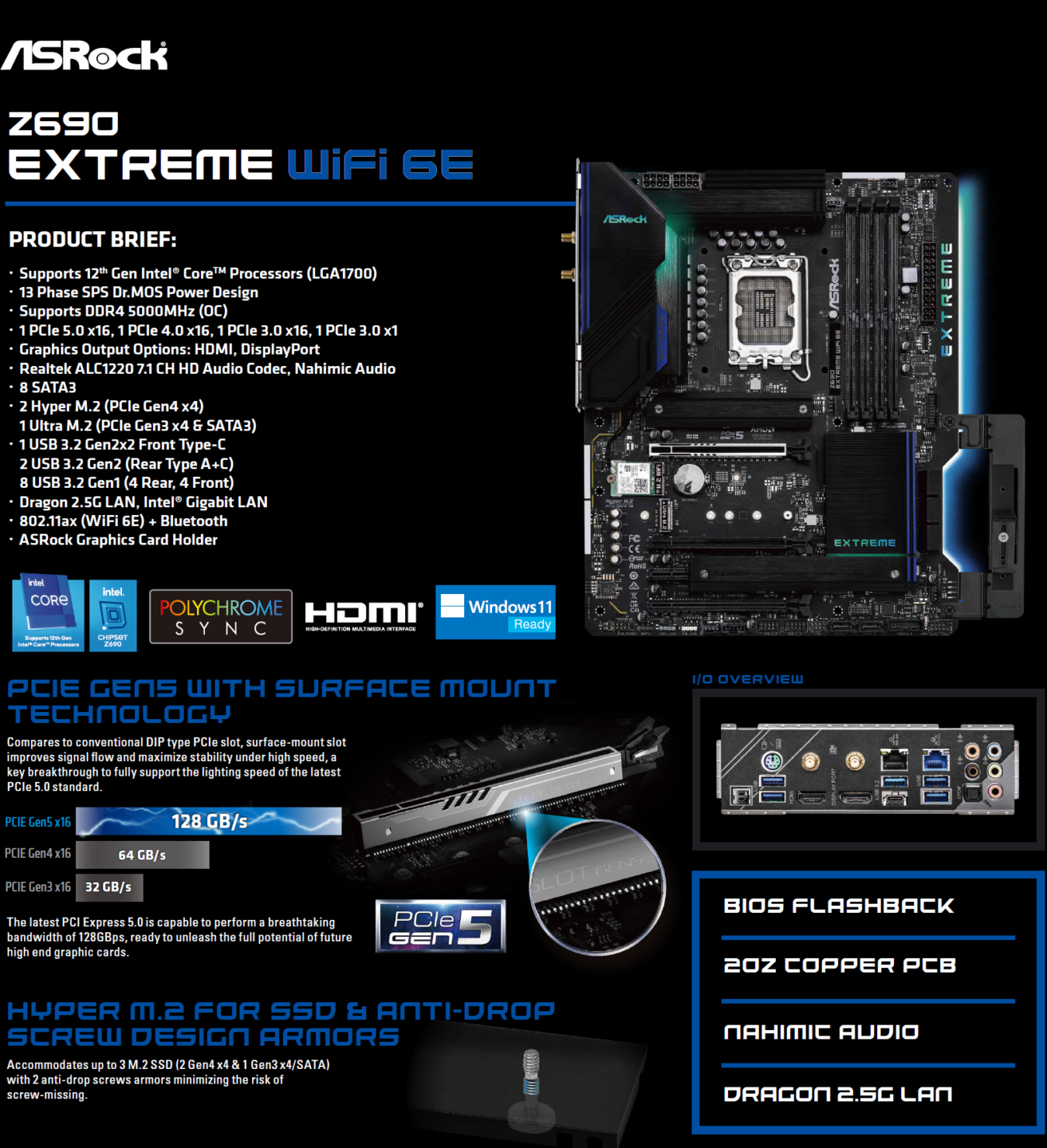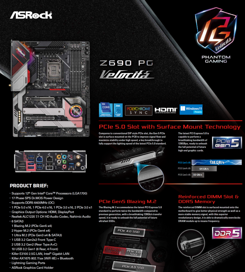 Jeżeli chodzi o specyfikacje płyt, to konstrukcje oparte na chipsecie Z690 są kompatybilne jedynie z procesorami Intel Alder Lake, bowiem mają na pokładzie gniazdo LGA1700. Co więcej, niektóre modele wspierają pamięci operacyjne w starszym standardzie DDR4 – m.in. są to Steel Legend WiFi 6E, PRO RS, PG Riptide, a także Extreme WiFi 6E, nawet do 5000 MHz.