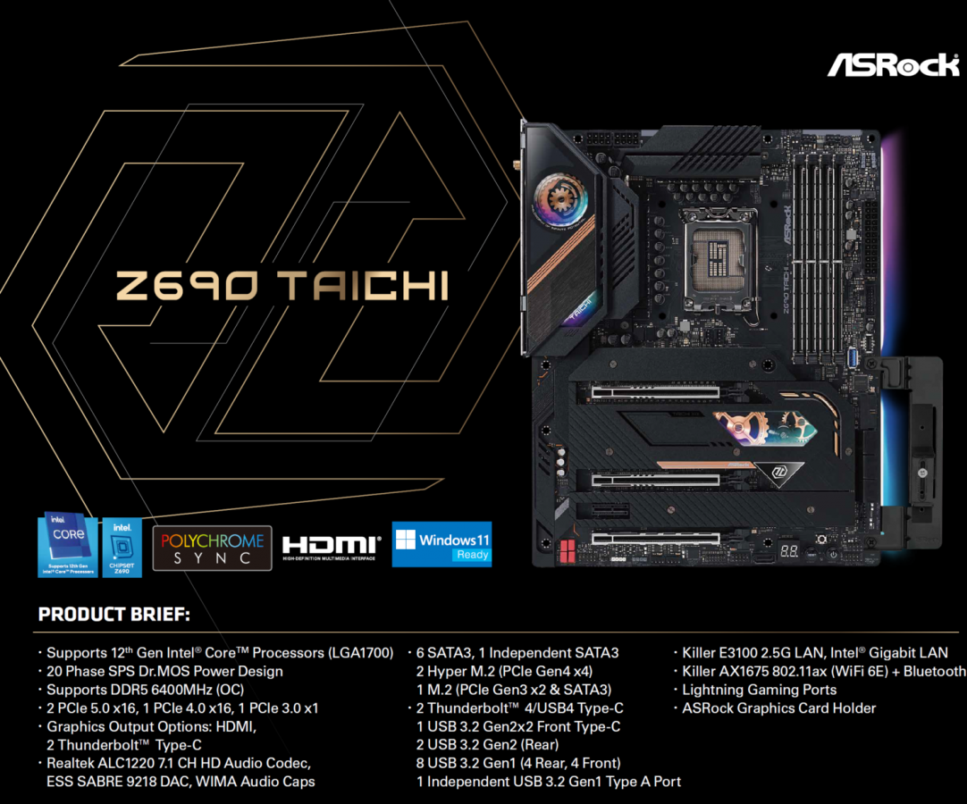 Jak widać, każda z najnowszej generacji płyt ASRock 690 ma przypisaną konfigurację BFB – w głównej mierze zależną od sekcji zasilania. Dla przykładu, model ASRock Z690M-ITX został wyposażony w 7+1-fazową sekcję i pozwala na uzyskanie dodatkowych 25 W dla procesora. Modele z wyższej półki – Z690 Extreme, za sprawą 12+1 sekcji i natężeniu 60 A, zuskuje nawet 155 W energii, natomiast topowy Z690 Taichi, dzięki sekcji 19+1, ma nielimitowany zakres dodatkowej mocy.