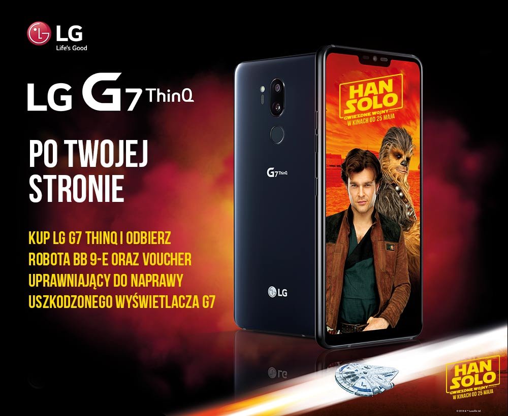 Po poprawnej rejestracji produktu i zakupu, do klienta wysłaną zostaną nagrody. Pierwszą z nich jest robot BB-9E Star Wars o rynkowej wartości 549 złotych, natomiast druga to voucher na jednorazową, bezpłatną wymianę uszkodzonego wyświetlacza w LG G7 ThinQ (jego wartość to 529 złotych). Kupon będzie ważny do 1 czerwca 2019 roku. Łączna wartość gratisów to 1078 złotych.