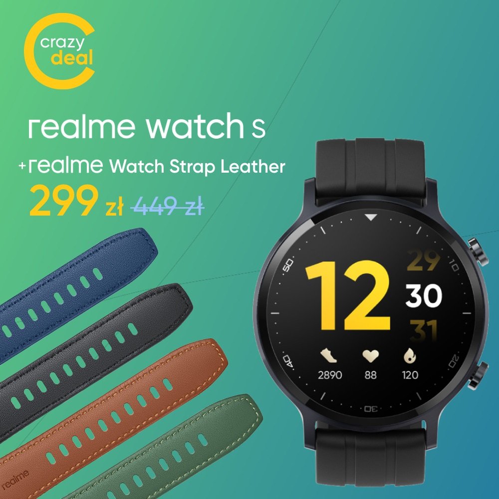 Od dziś klienci mogą skorzystać z kolejnej porcji ofert specjalnych na urządzenia tej „wschodzącej” marki. O ile większość będzie dostępna przez najbliższe dwa tygodnie, o tyle realme Watch S wraz z dwoma wymiennymi paskami można kupić za 299 złotych tylko dziś (do godziny 12:00) w sklepie internetowym sklep-realme.pl. Jeśli jednak komuś nie zależy na dodatkowym pasku, to w Plusie kupi ten smartwatch jeszcze taniej, bo za 230 złotych.