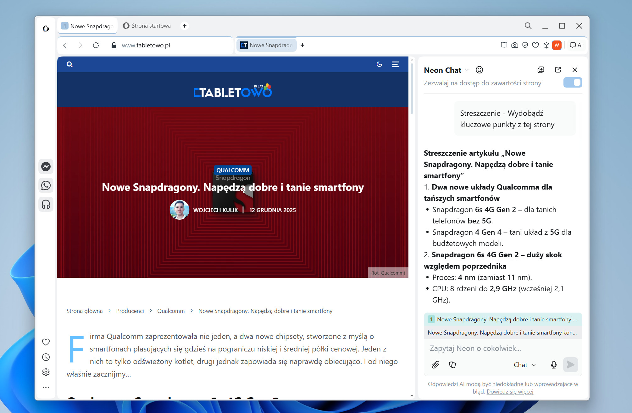 Początkowo, w październiku 2025 roku, Opera Neon została udostępniona wyłącznie wąskiemu gronu testerów. Znalazłem się wśród tych pierwszych użytkowników, dzięki czemu mogłem się przekonać, że potencjał drzemiący w tej przeglądarce faktycznie jest spory. Uważam, że może to być świetna opcja dla kogoś, kto i tak regularnie korzysta lub zamierza korzystać z popularnych modeli AI.