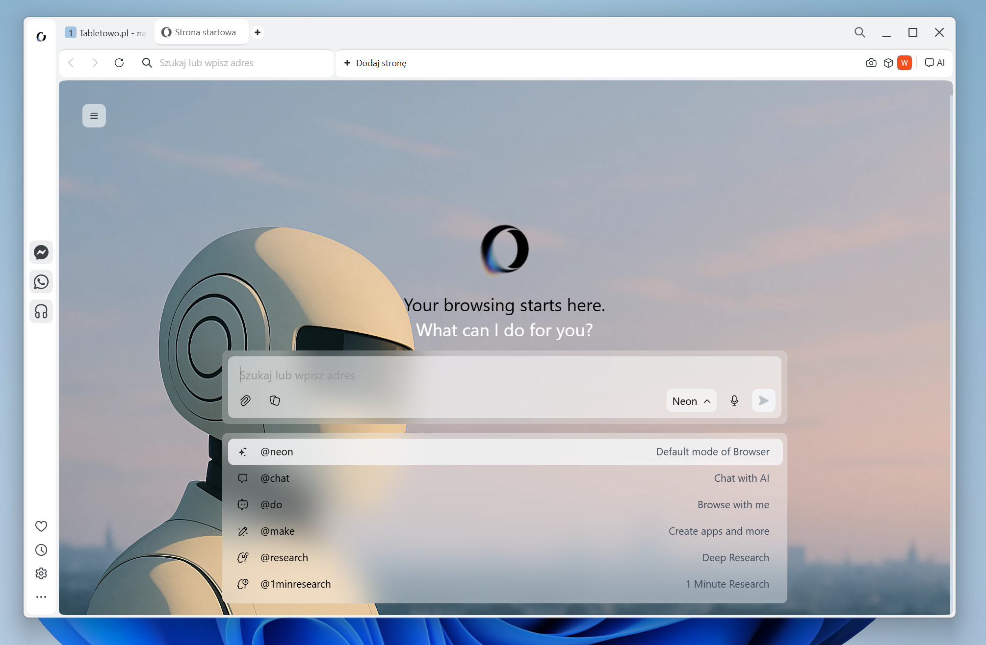 Opera Neon to płatna przeglądarka internetowa. Cała skupiona wokół AI