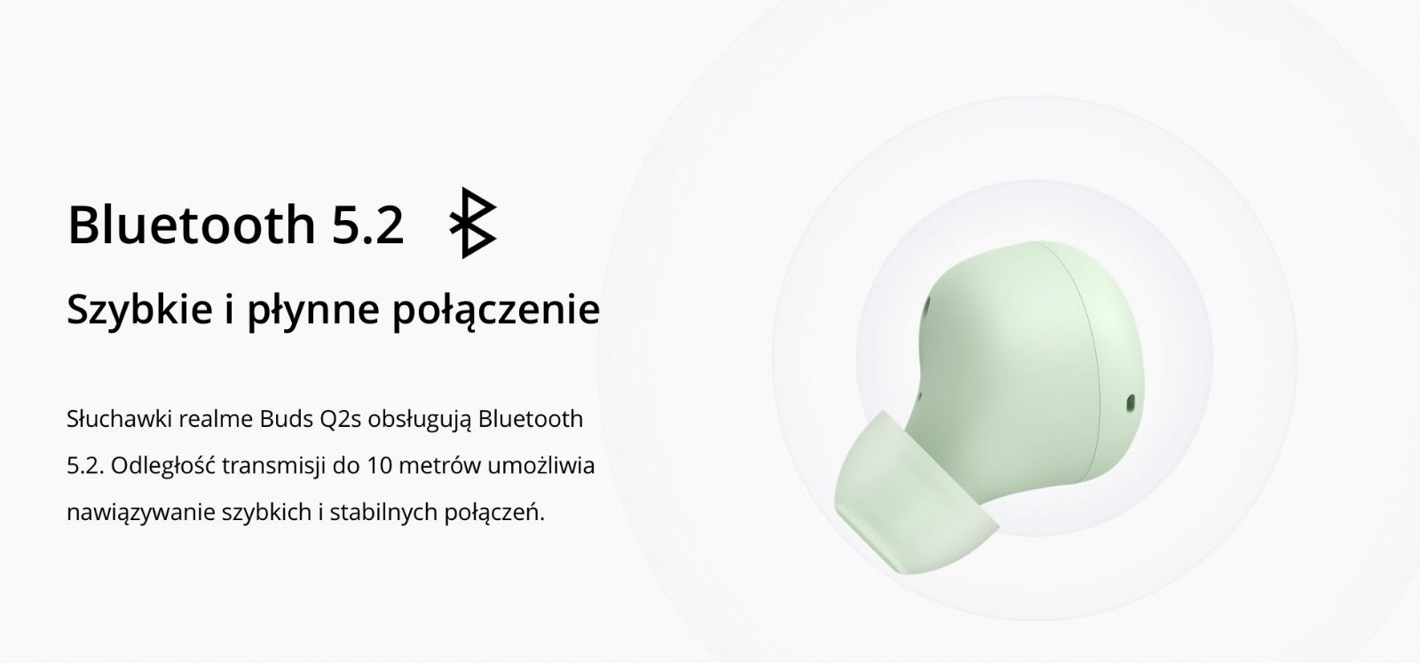 Otóż realme Buds Q2s zyskały wsparcie Bluetooth 5.2, co znacząco wpływa na jakość i stabilność dźwięku w porównaniu do standardu 5.0. Do fragmentu dot. algorytmu ENC, który odpowiada za redukcję hałasu podczas rozmowy pojawił się dopisek „AI”, co oznacza, że wyłapywanie dźwięków z otoczenia jest teraz jeszcze bardziej skuteczne i precyzyjne.