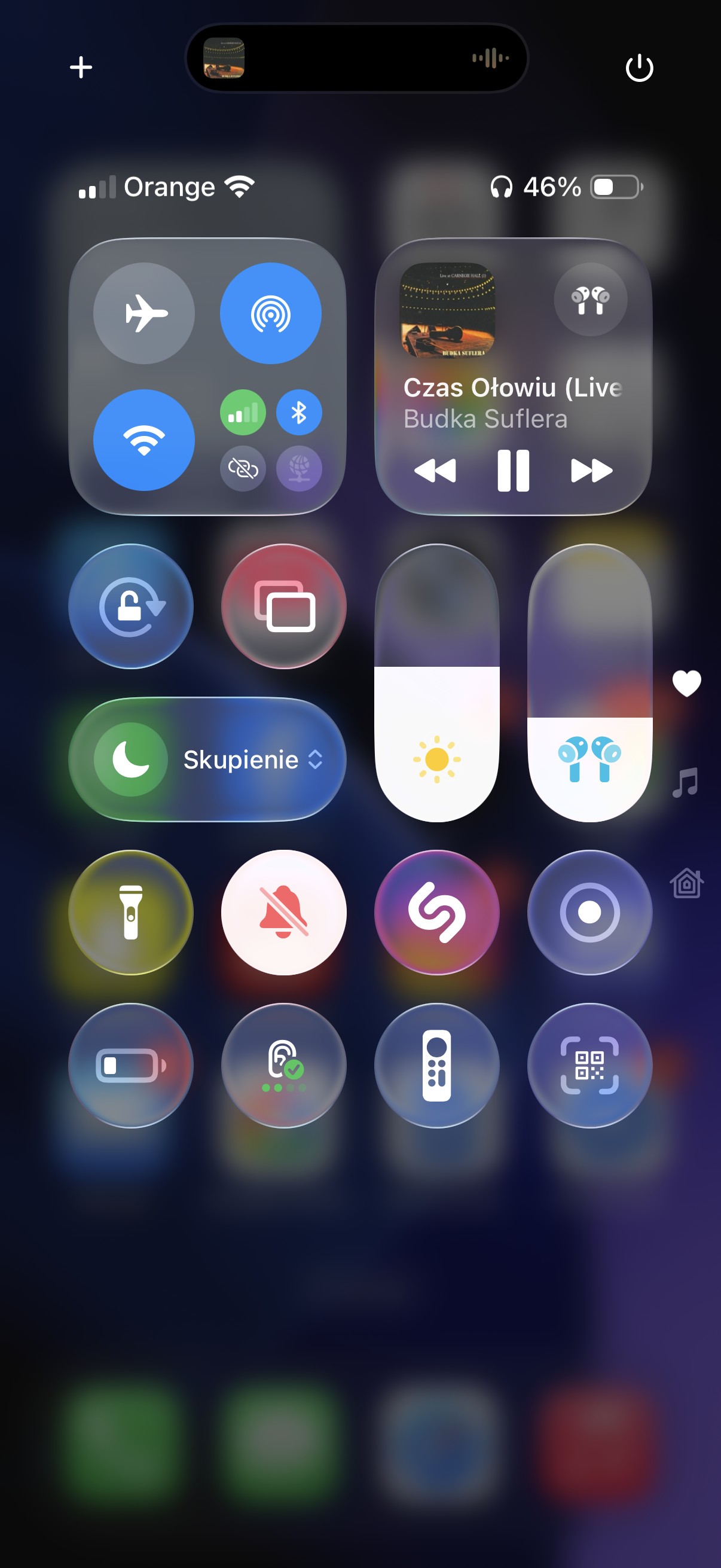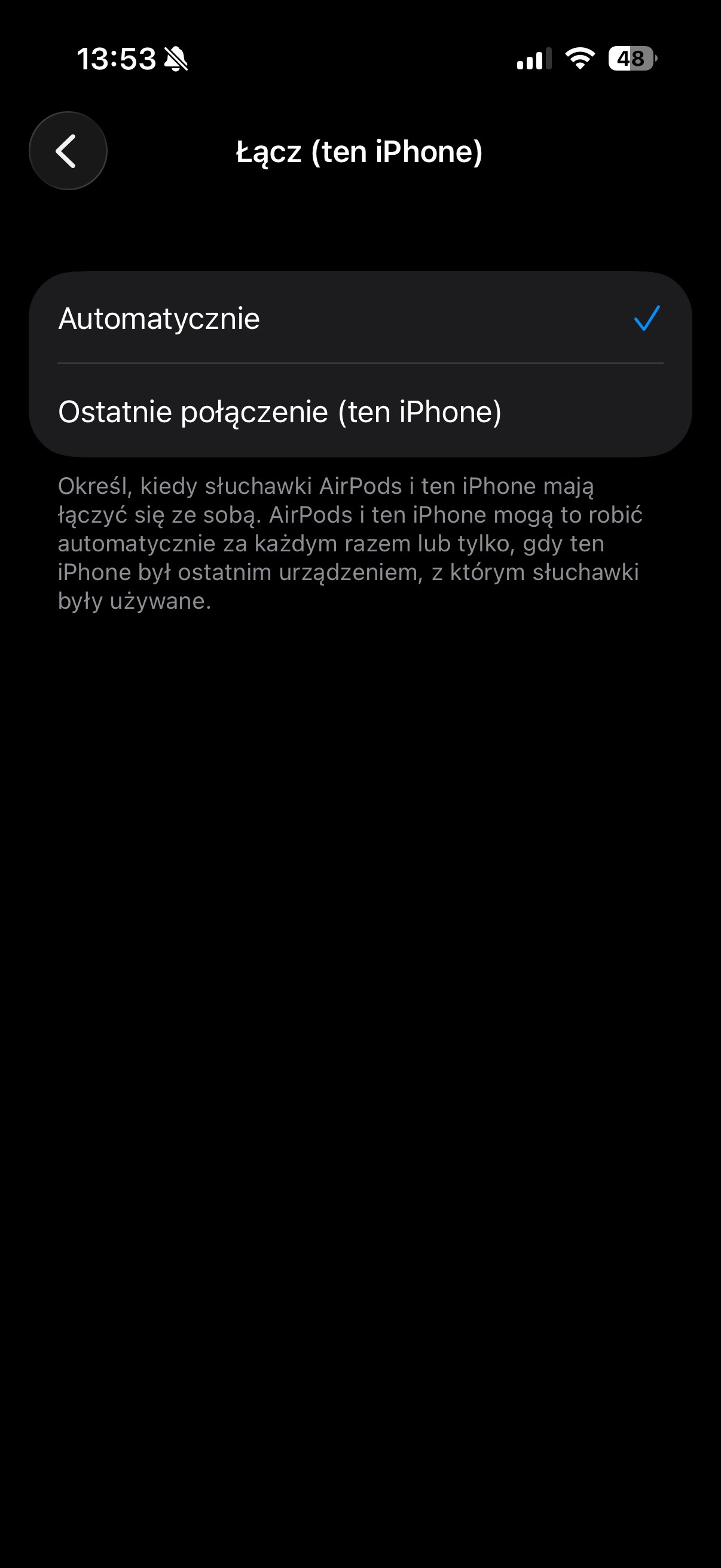 Parowania dokonujemy poprzez wyskakujące okienko, które później, przy ponownym łączeniu, pokazuje stan naładowania słuchawek. Gdy AirPods są połączone, z poziomu centrum sterowania możemy szybko przełączyć tryby ANC oraz zmienić opcje dźwięku przestrzennego.