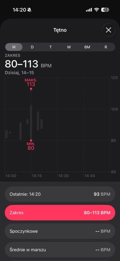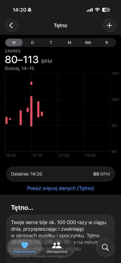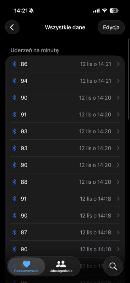 I, muszę przyznać, że w praktyce spisuje się to lepiej niż się spodziewałem. Wyniki pomiarów tętna pojawiają się w aplikacji Zdrowie już w pierwszych dwóch minutach od włożenia słuchawek do uszu i są stale odświeżane, w około minutowych interwałach.