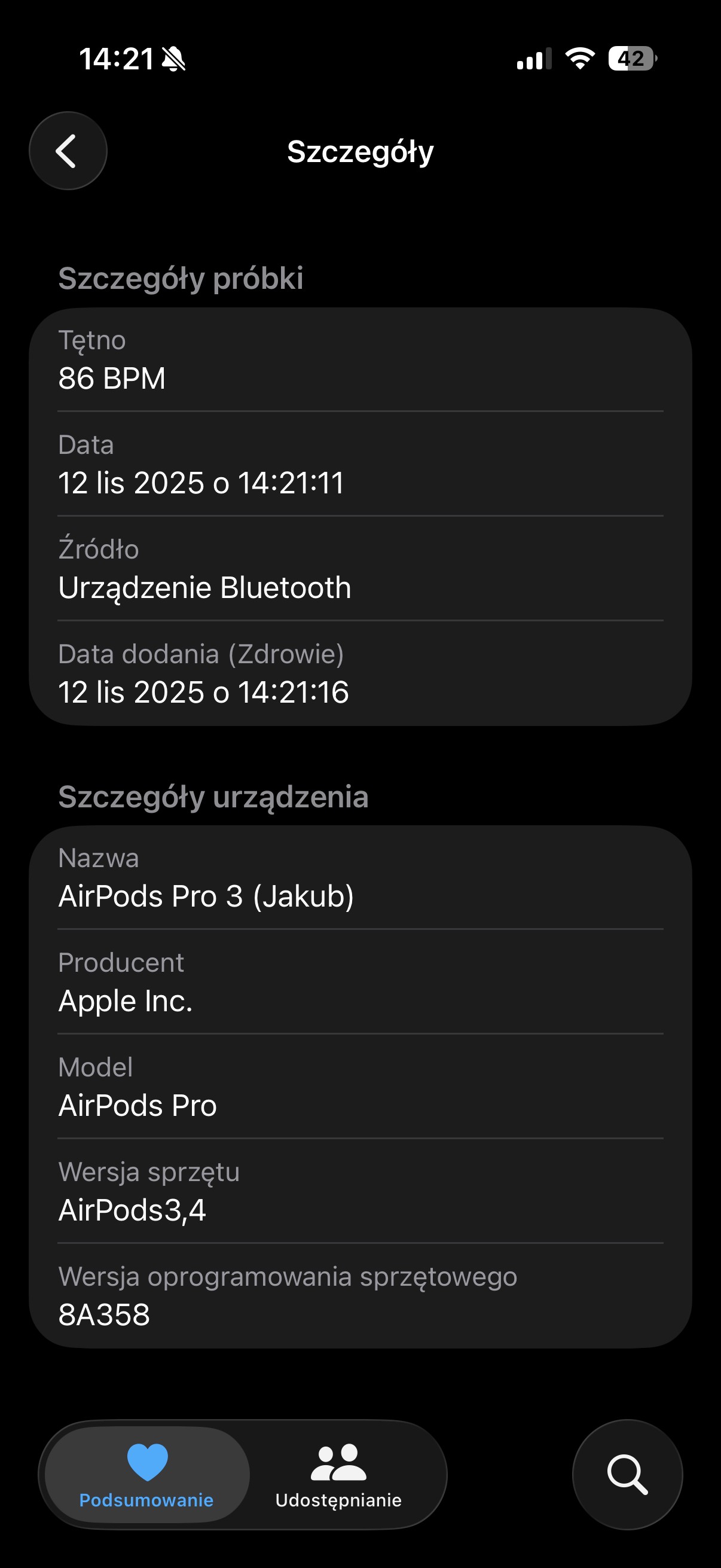 AirPods Pro 3 mierzą tętno w zasadzie przez cały czas, gdy znajdują się w uszach i na bieżąco przesyłają dane do aplikacji Zdrowie na iPhonie. Te pojawiają się w postaci wykresów, dokładnie tak, jak w przypadku pomiarów zapisywanych przez Apple Watcha.