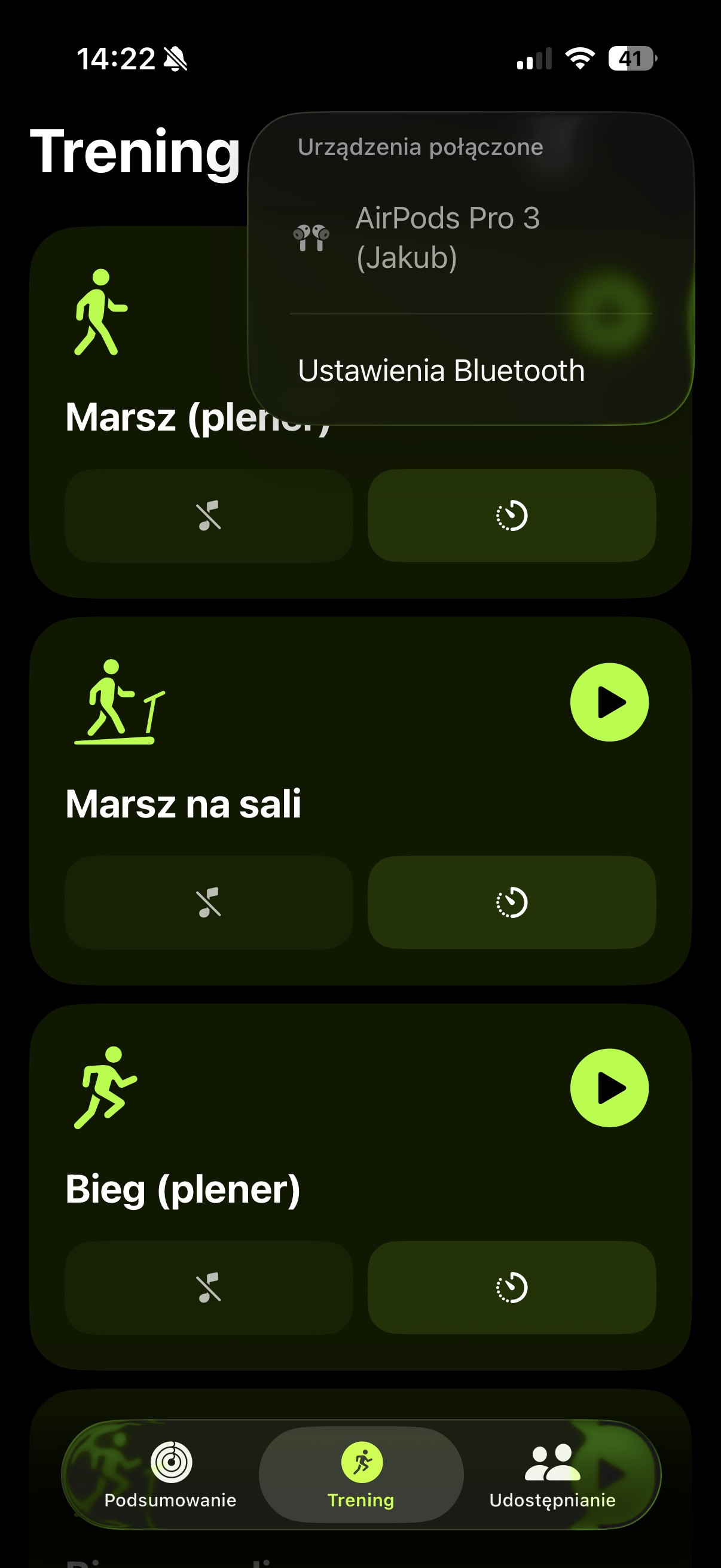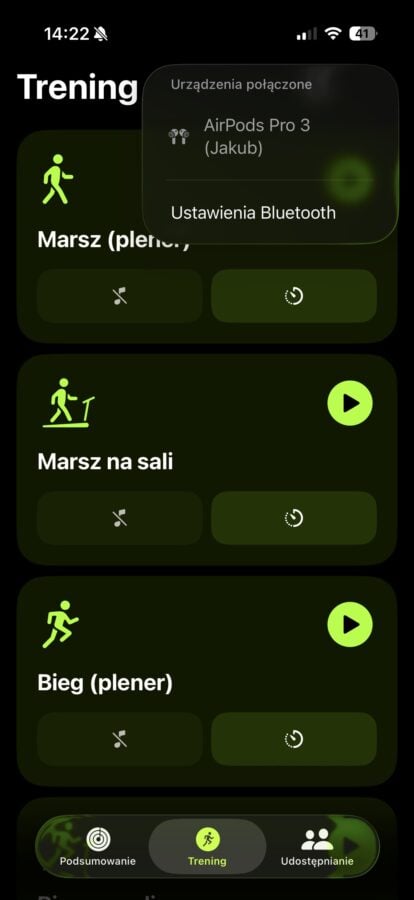 Przy tym, łączą się one również z apką Fitness i mogą być wykorzystywane do rejestrowania treningów, odczytując podczas nich tętno oraz informacje z akcelerometrów znajdujących się w słuchawkach (m.in. do obliczania spalanych kalorii). Oznacza to mniej więcej tyle, że część form aktywności można zarejestrować używając samego iPhone’a i AirPods Pro 3, bez zegarka.