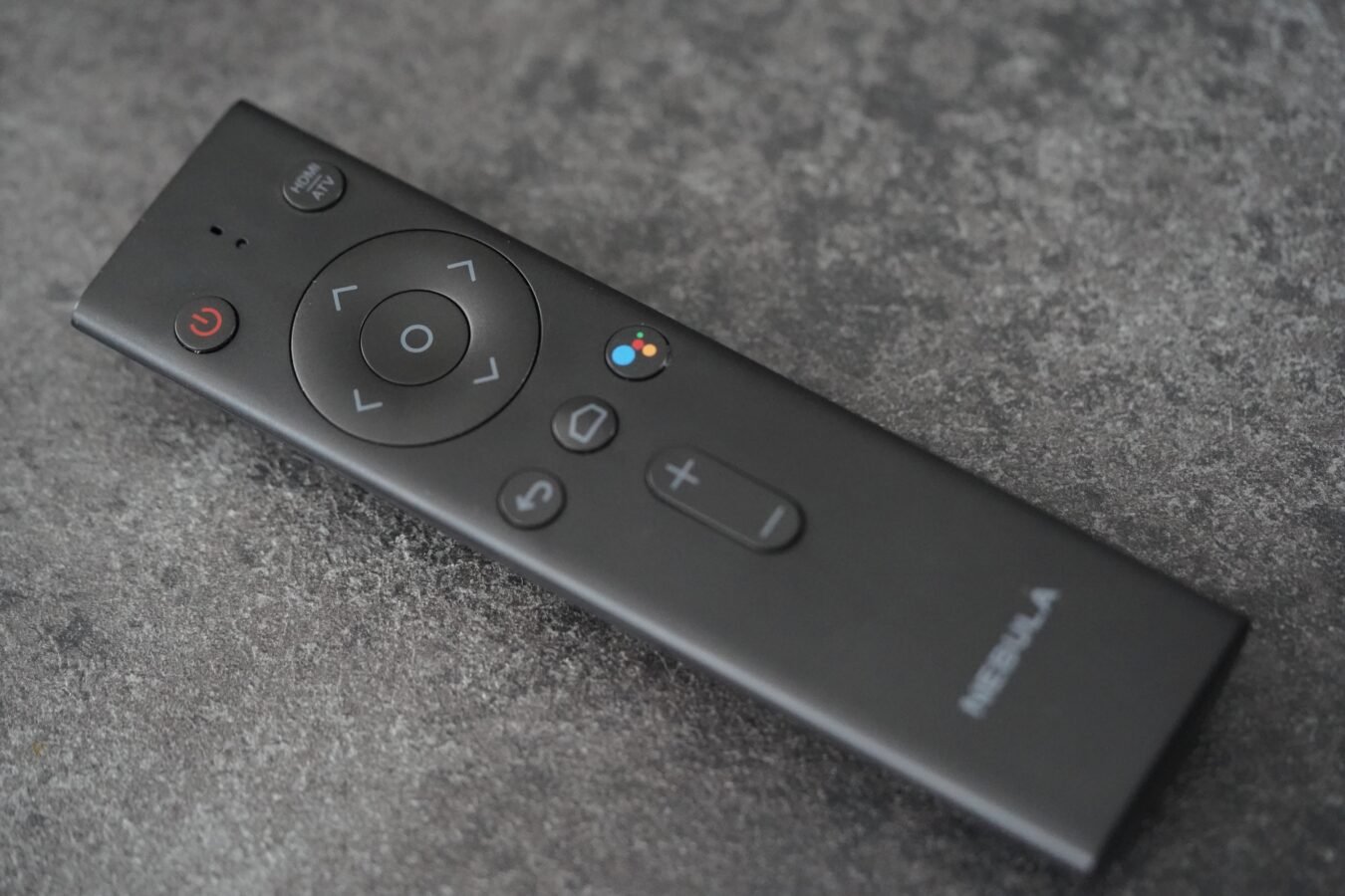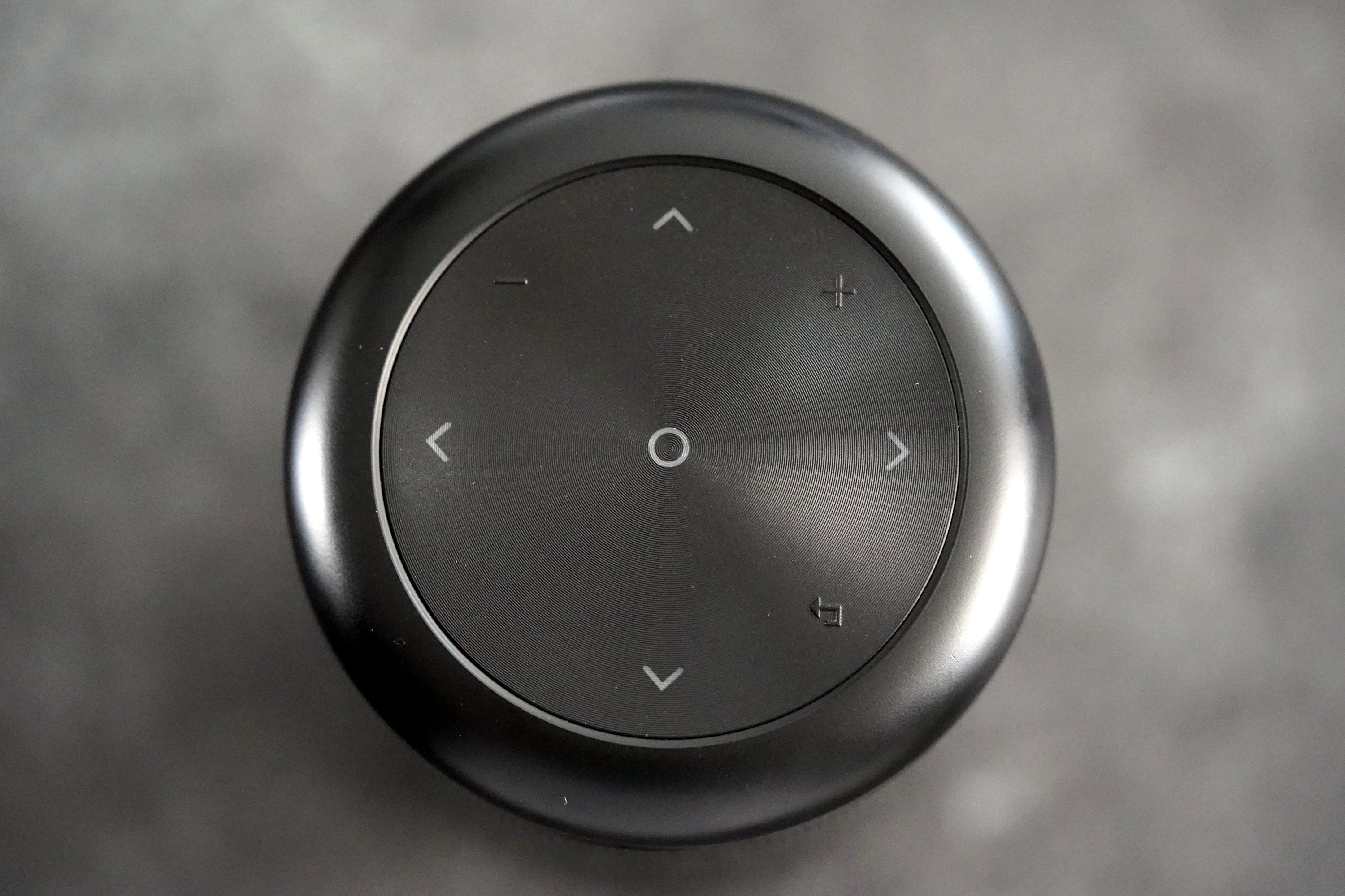Sterowanie projektorem jest możliwe na trójnasób – z pomocą dotykowych przycisków z poziomu projektora, pilota (trochę szkoda, że klawisze nie są podświetlane) oraz smartfona. Dwie pierwsze opcje zdają się dla mnie najwygodniejsze, ze wskazaniem jednak na pilota – najszybszy i najbardziej precyzyjny, zwłaszcza, gdy można użyć wyszukiwania głosowego.
