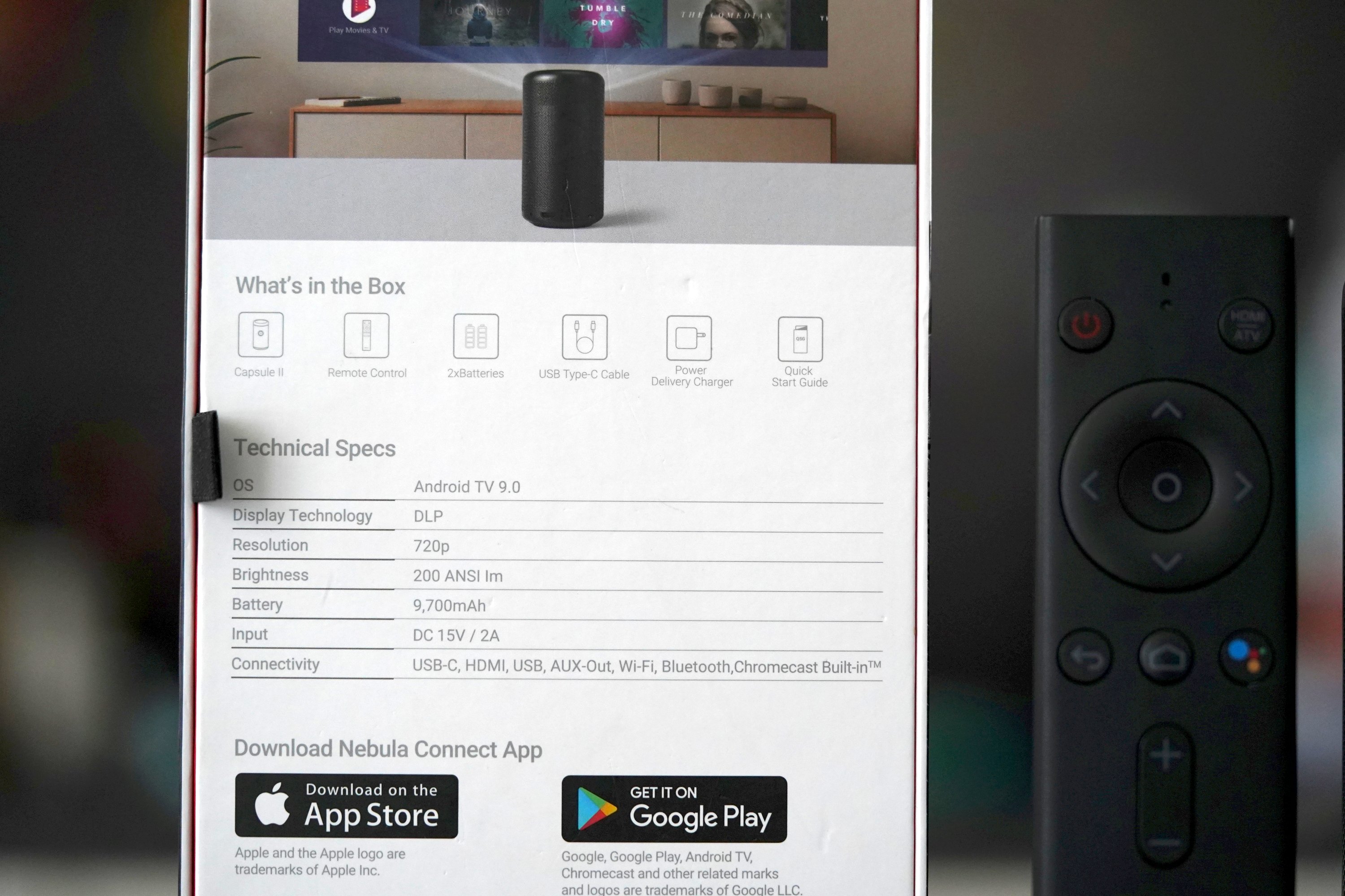 W zestawie sprzedażowym z Nebula Capsule II dostajemy pilota oraz ładowarkę. Brakuje mi tu jakiegoś, choćby podstawowego pokrowca, który chroniłby sprzęt podczas przenoszenia z miejsca w miejsce – w końcu to projektor mobilny, który z całą pewnością nie będzie użytkowany tylko stacjonarnie.