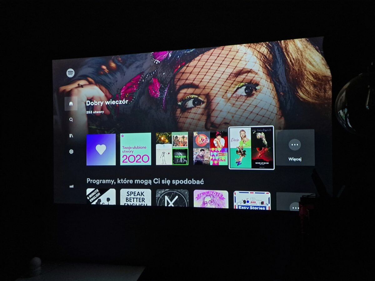 Wszystkie porty działają poprawnie – wystarczy wpiąć laptopa czy pendrive’a w odpowiednie złącze, by projektor je wykrył i zaczął projekcję z konkretnego źródła. Przyznaję jednak, że dla mnie to jedynie dodatek – przez zdecydowaną większość czasu korzystam z możliwości, jakie daje Android TV sam w sobie (o tym dalej).