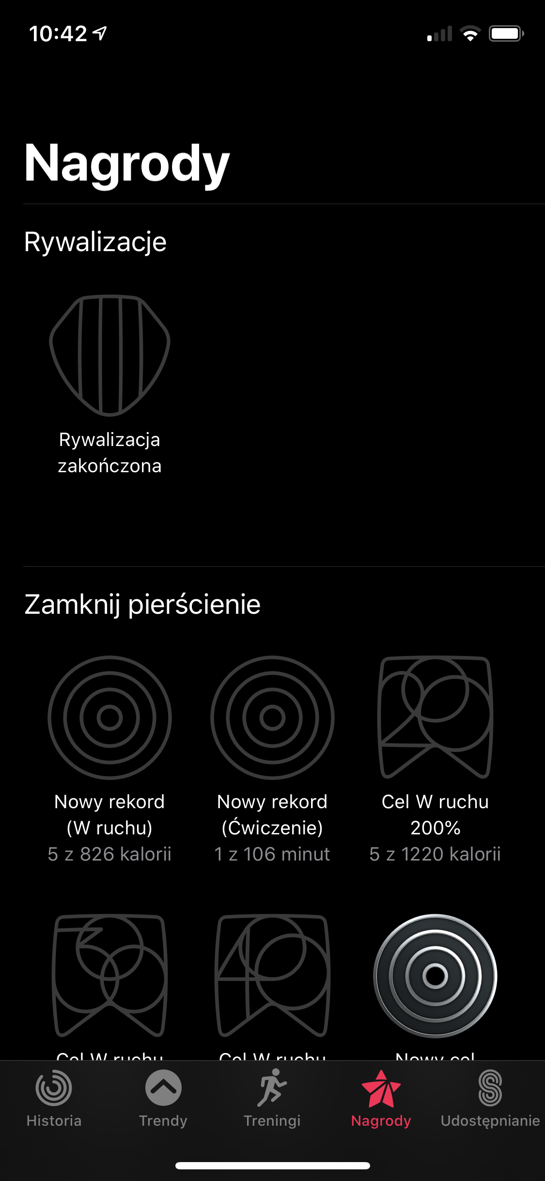 W oddzielnej aplikacji Aktywność mamy dostęp do wszystkich wyników naszych ćwiczeń, ilości wykonanych kroków oraz pokonanym dystansie. Znajdziemy tu także nasze nagrody za zamknięte pierścienie aktywności oraz będziemy mieć okazję udostępnić je znajomym, by motywować siebie nawzajem do częstszego uprawiania sportu. Możliwości programu z pewnością docenią osoby, którym smart-zegarek służy jako pomoc w codziennych treningach.