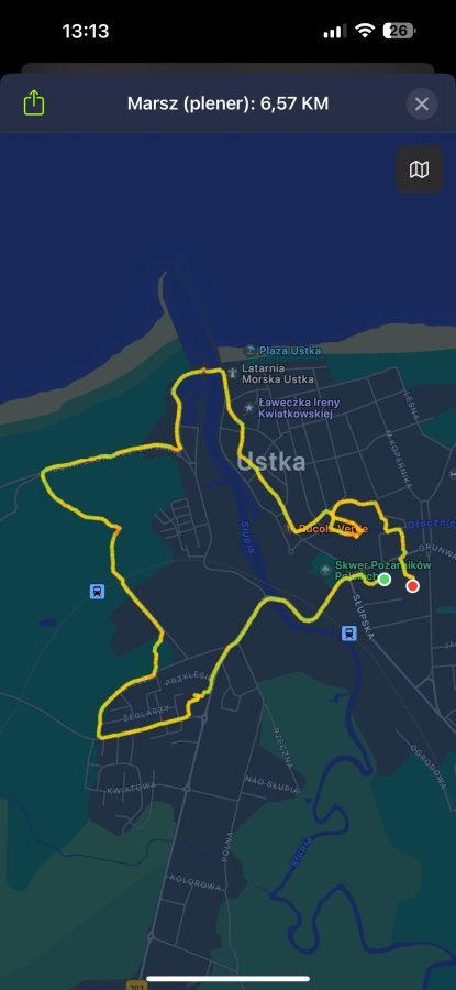 Oczywiście z racji tego, że Watch Series 9 jest wyposażony w niezależny moduł GPS, jest w stanie samodzielnie rejestrować trasę bez udziału iPhone’a. Co do samej dokładności obliczania dystansu i zapisu tras nie mam żadnych zastrzeżeń, wszystko działa tu absolutnie świetnie. Nie zdarzyło mi się ani razu, by GPS zgubił sygnał i nie zapisał jakichś danych z treningu.