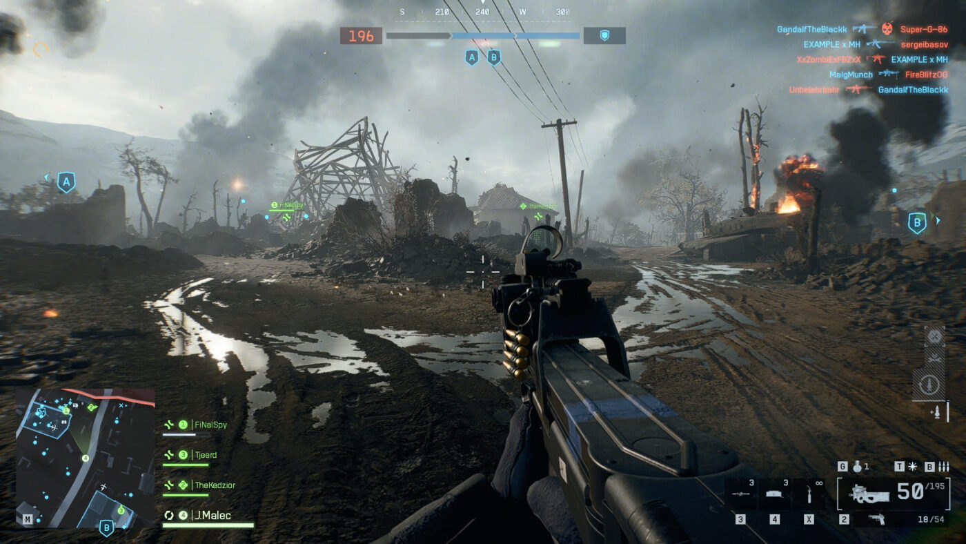 - Battlefield 6: ustawienia grafiki automatyczne, generowanie klatek FSR, skalowanie FSR – między 60 a 75 FPS,