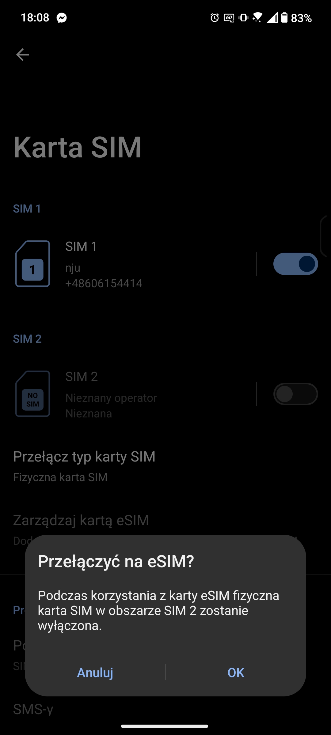 - dual SIM (2x fizyczny lub 1x fizyczny i 1x eSIM),