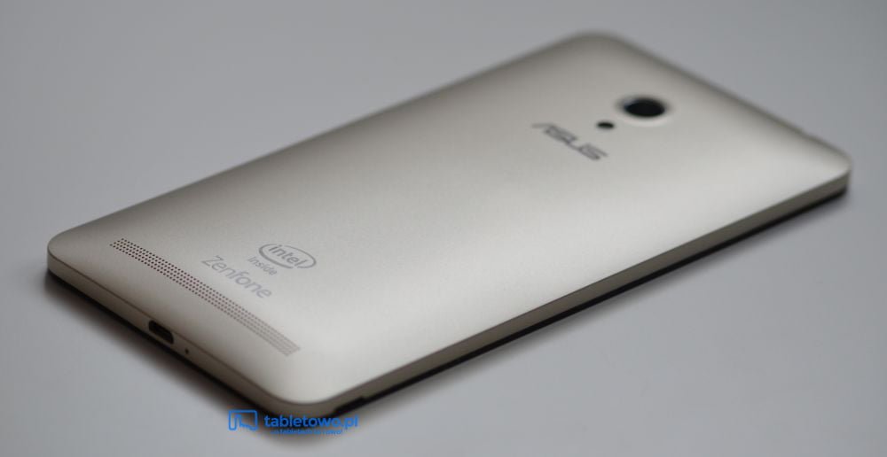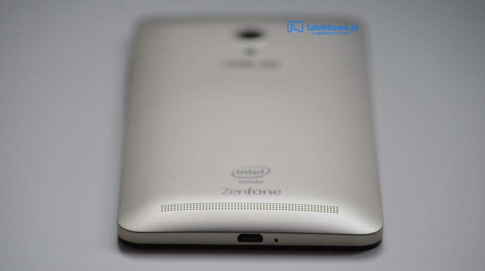 Z tyłu znalazł swe miejsce obiektyw aparatu o rozdzielczości 13 Mpix z diodą doświetlającą poniżej, a jeszcze niżej – logo Asusa. Na samym dole pokrywy umieszczone zostały głośniki, a właściwie jeden, co okazuje się po zdjęciu obudowy urządzenia. Głośnik przeznaczony do rozmów telefonicznych wraz z kamerką przednią i logo Asusa znajdziemy nad ekranem.