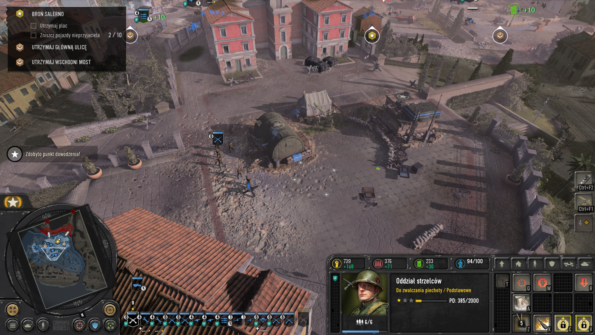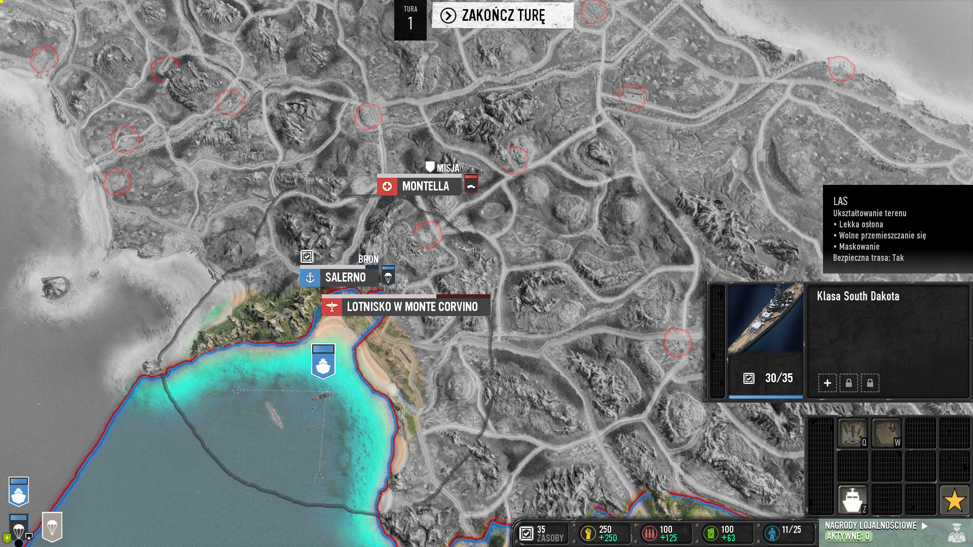 Wcielając się w Aliantów wylądujemy Amerykanami na plaży we Włoszech i musimy przesuwać linię frontu w głąb kraju, żeby finalnie dotrzeć do Rzymu. Zaczynamy od desantu, a później musimy przygotować porządny przyczółek do dalszej ekspansji. Zdobycie następnych miast i portów pozwoli nam na zrzucenie na ląd kolejnych kompani oraz korzystanie ze wsparcia artyleryjskiego prosto z morza. Z całą pewnością większość graczy najpierw sięgnie po kampanię Aliantów, co po części jest zrozumiałe.