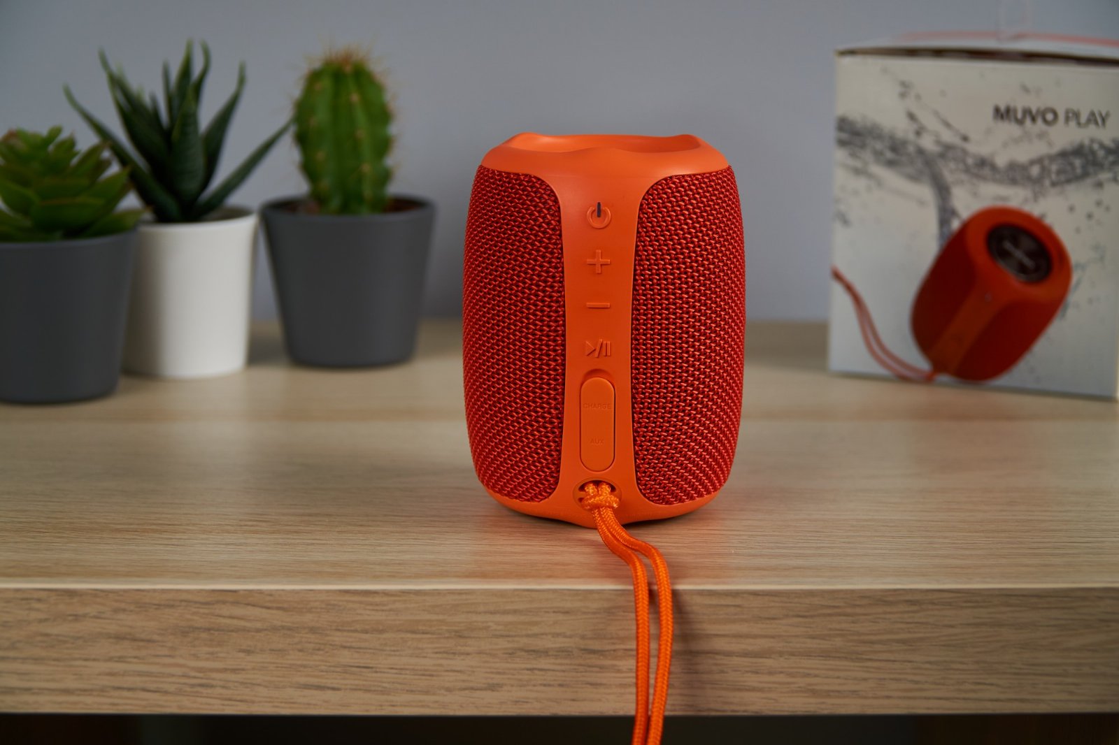 Myślę, że nie muszę nadmiernie rozwodzić się na wzornictwem – większość producentów ma już w swojej ofercie coś na podobną modłę. Głośnik Creative Muvo Play jest dostępny w trzech wariantach kolorystycznych – czarnym, niebieskim oraz pomarańczowym. Do mnie trafiła ta trzecia, jakby nie patrzeć – najbardziej imprezowa.