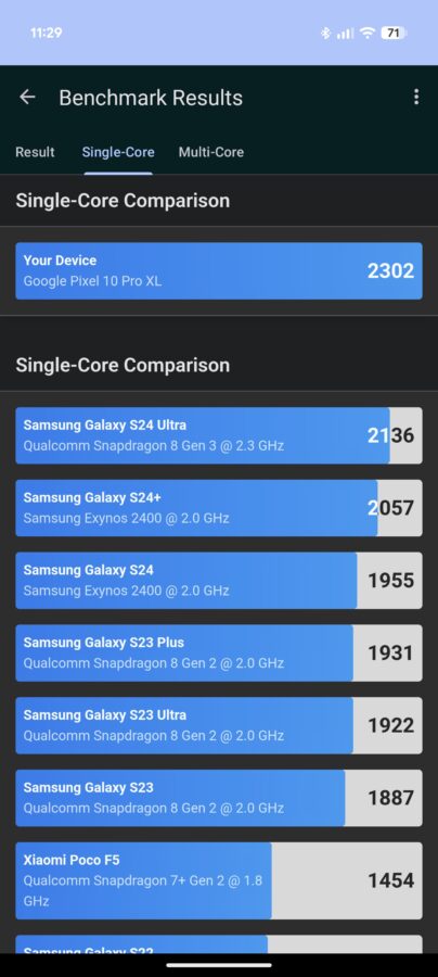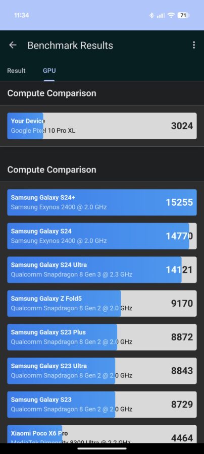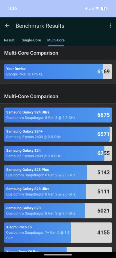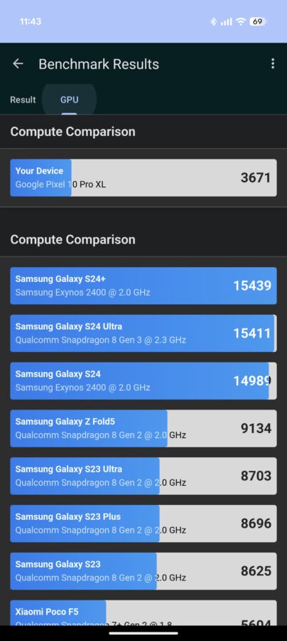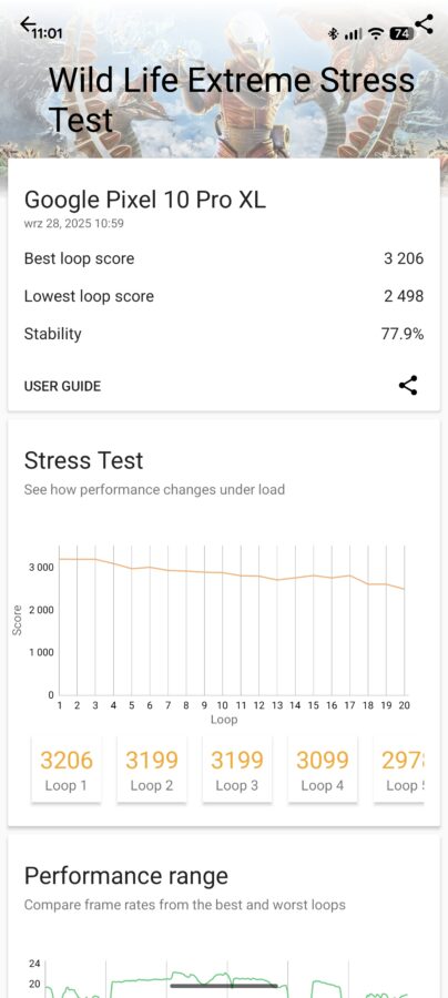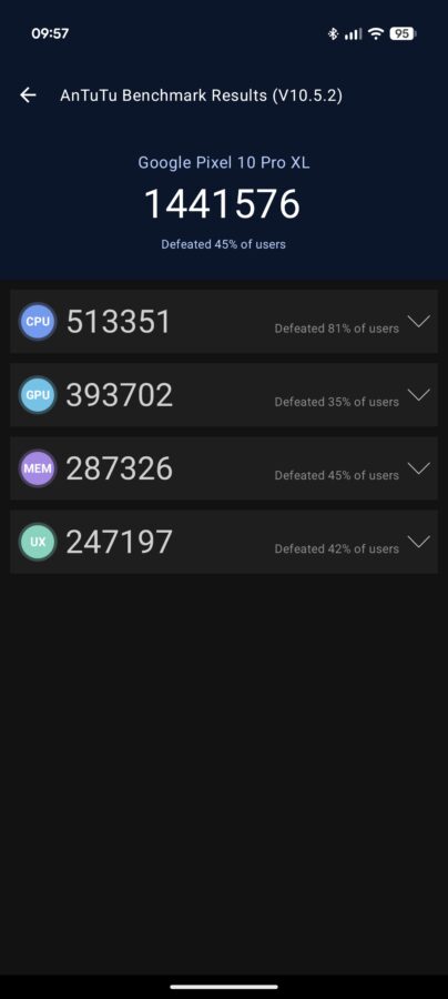 Choć – według zapewnień – ma on oferować o 34% lepszą wydajność (a sam układ TPU aż do 60%), wciąż okazuje się być to trochę zbyt niskimi osiągami, by doskoczyć do konkurencji. Wyniki benchmarków plasują się mniej więcej na poziomie średniopółkowych smartfonów, tudzież ex-flagowców. To może powodować pewien zgrzyt, bo kupując smartfon za tą cenę, mimo wszystko chcielibyśmy dostać trochę wyższą wydajność, która może wówczas lepiej rokować na długodystansowe płynne działanie.