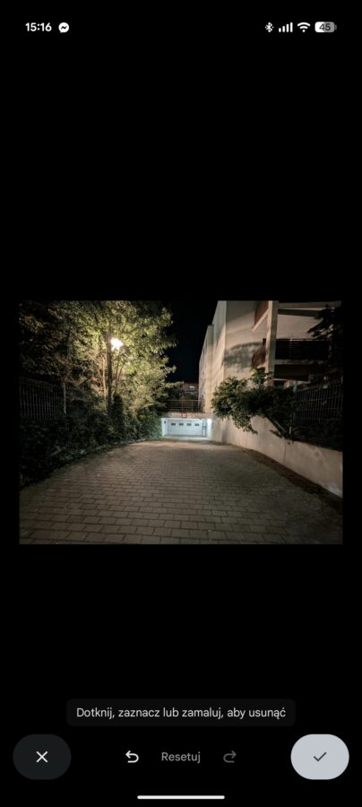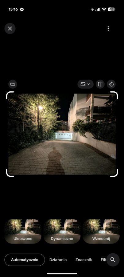 A gdy zapada noc, wtedy do akcji wchodzi tryb nocny. Ten załącza się automatycznie i z reguły – faktycznie – dzieje się to celnie. Jeśli chcemy, możemy go wyłączyć, choć musimy wówczas trochę się naklikać, bo zostało to lekko zagmatwane w interfejsie (podobnie jak ponowne jego włączenie). Jest on również wydzielony jako osobny tryb foto, zatem nic nie stoi na przeszkodzie, by w dowolnej sytuacji wymusić go ręcznie.