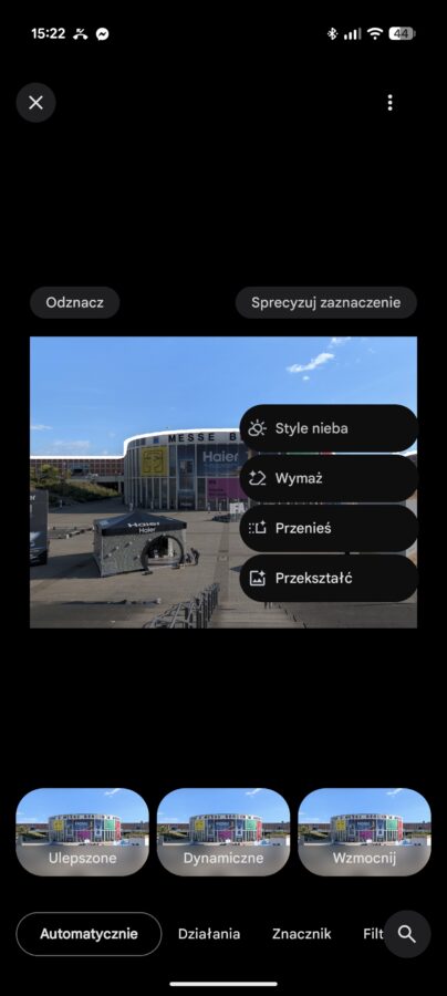 Z czego zatem możemy korzystać? Przede wszystkim z edytora zdjęć AI, który został zaszyty w aplikacji Zdjęcia, czyli systemowej galerii. Jak łatwo się domyślić, pozwala on na manipulowanie fotkami, a konkretniej usuwanie z nich i przenoszenie wybranych rzeczy oraz generowanie dodatkowych elementów z użyciem AI.
