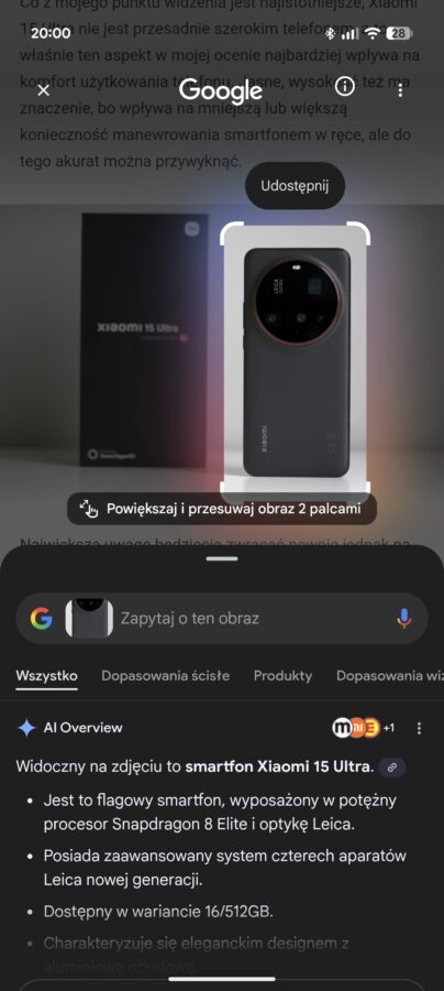 Poza tym, mamy oczywiście dostęp do funkcji stricte powiązanych z Gemini, w tym ciągłej rozmowy Gemini Live wraz z udostępnianiem ekranu i obrazu z kamery oraz Circle to search, czyli wyszukiwania w Google zawartości, która wyświetla nam się na ekranie poprzez zakreślenie interesującej nas rzeczy.