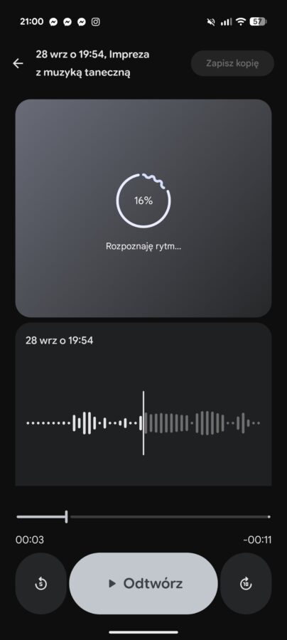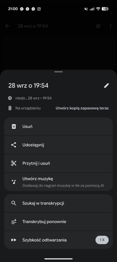 Ciekawostką jest zaszyta w aplikacji dyktafonu możliwość tworzenia muzyki w różnych stylach z wykorzystaniem nagrań głosowych. Przyznam jednak, że sięgnąłem do tej opcji tylko raz i efekt był – dyplomatycznie mówiąc – mierny. Możemy więc bez żalu pominąć jej opis.