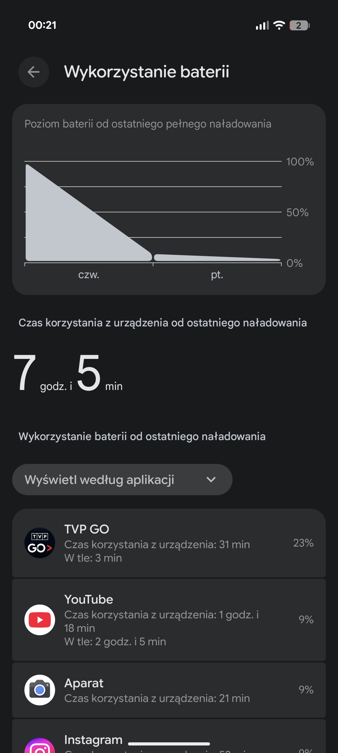Zazwyczaj, telefon odłączony rano, około godziny 8:00, podłączenia do prądu domagał się w okolicach 23:00-24:00 i był to wysoce powtarzalny scenariusz. W momencie, gdy dzień rozpocząłem dużo wcześniej, bo chwilę po 6:00 i przez cały czas korzystałem z telefonu poza domem na sieci 5G, rozładowanie do 1% nastąpiło o 18:00. Była to jednak pojedyncza sytuacja.