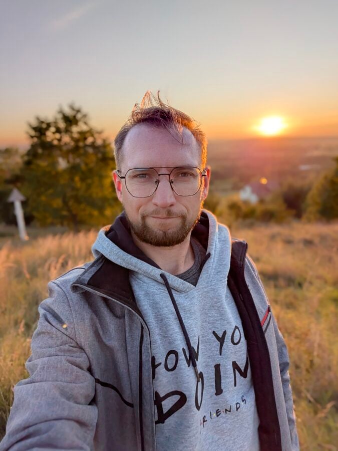 Gdy robimy fotki sobie, warto korzystać z trybu portretowego, który sprawnie rozmyje za nami tło, nadając zdjęciu charakterystyczny styl. Jeśli robimy zdjęcia całej grupie “z rąsi”, przydatne jest przełączenie się na wykorzystanie całego dostępnego kąta obiektywu (przybliżenie 0,7x) – wtedy więcej osób zmieści się w kadrze.
