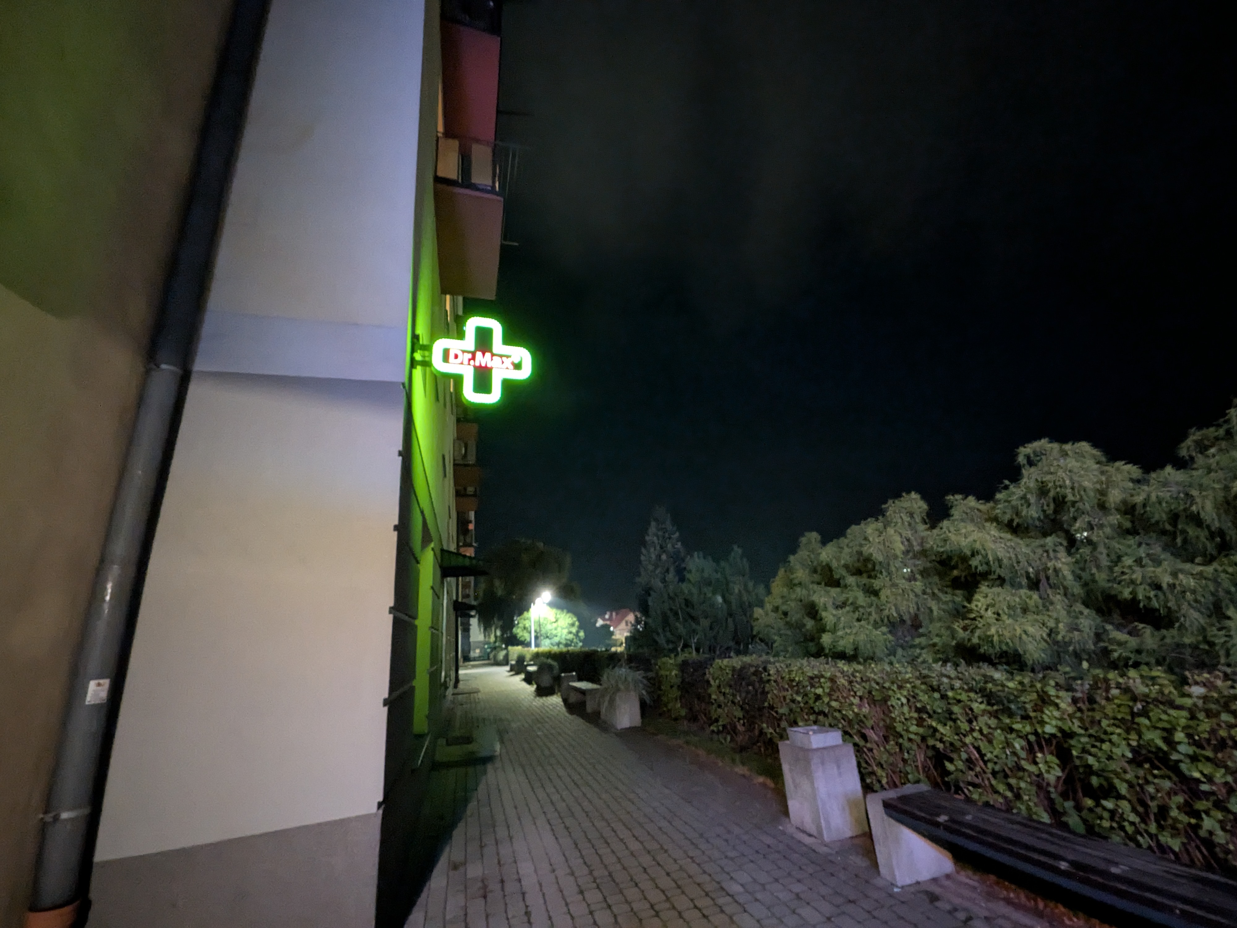 Kiedy jest ciemnawo, zaczyna niedomagać aparat ultraszerokokątny. Widać, że detale zdjęć, zwłaszcza na skraju kadrów, gdzieś umykają. To raczej naturalne, ale zaczynają być zauważalne niedociągnięcia i fotki nie są już tak plastyczne – efekt nie zawsze cieszy oko.