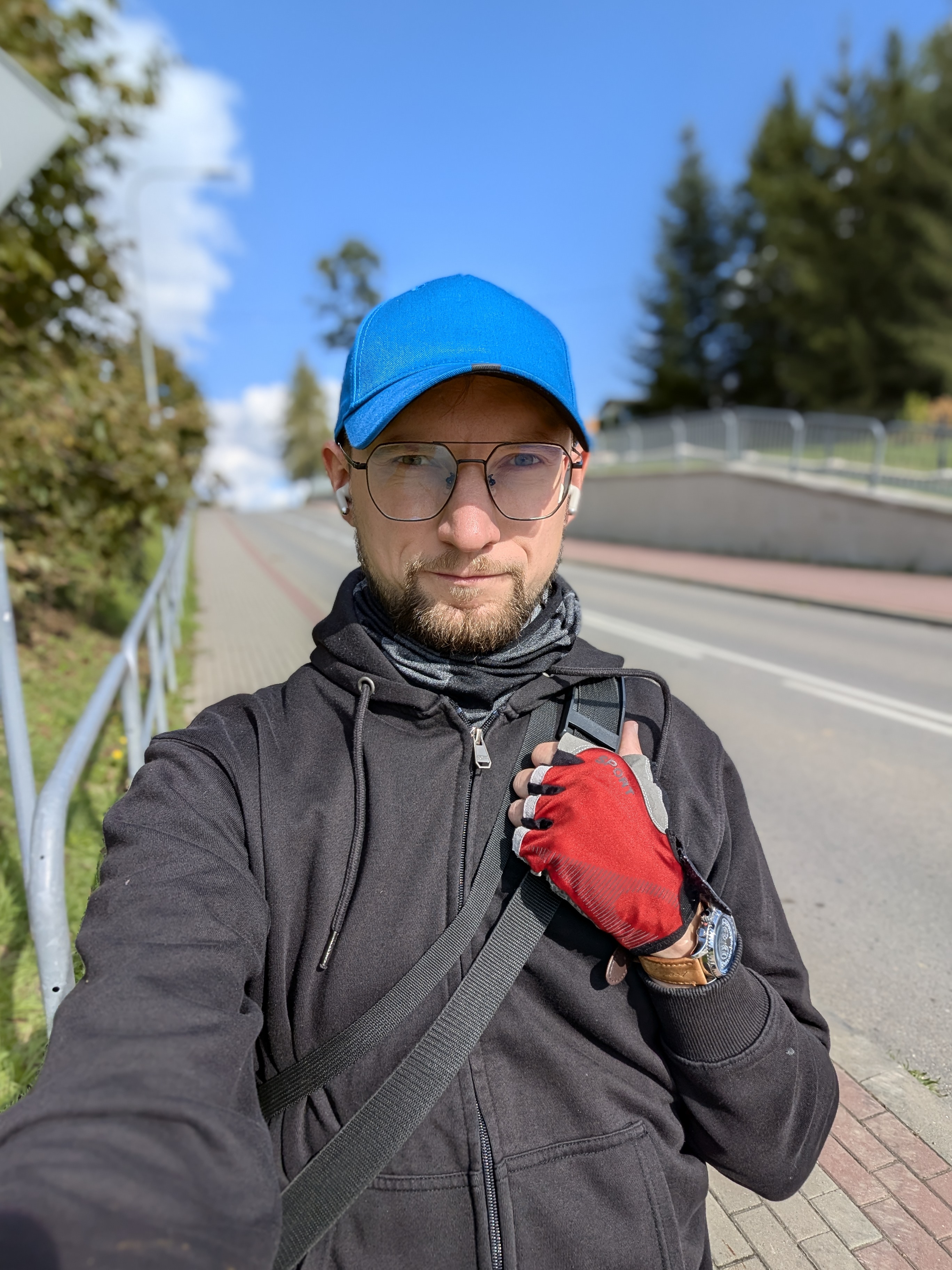 Gdy robimy fotki sobie, warto korzystać z trybu portretowego, który sprawnie rozmyje za nami tło, nadając zdjęciu charakterystyczny styl. Jeśli robimy zdjęcia całej grupie “z rąsi”, przydatne jest przełączenie się na wykorzystanie całego dostępnego kąta obiektywu (przybliżenie 0,7x) – wtedy więcej osób zmieści się w kadrze.