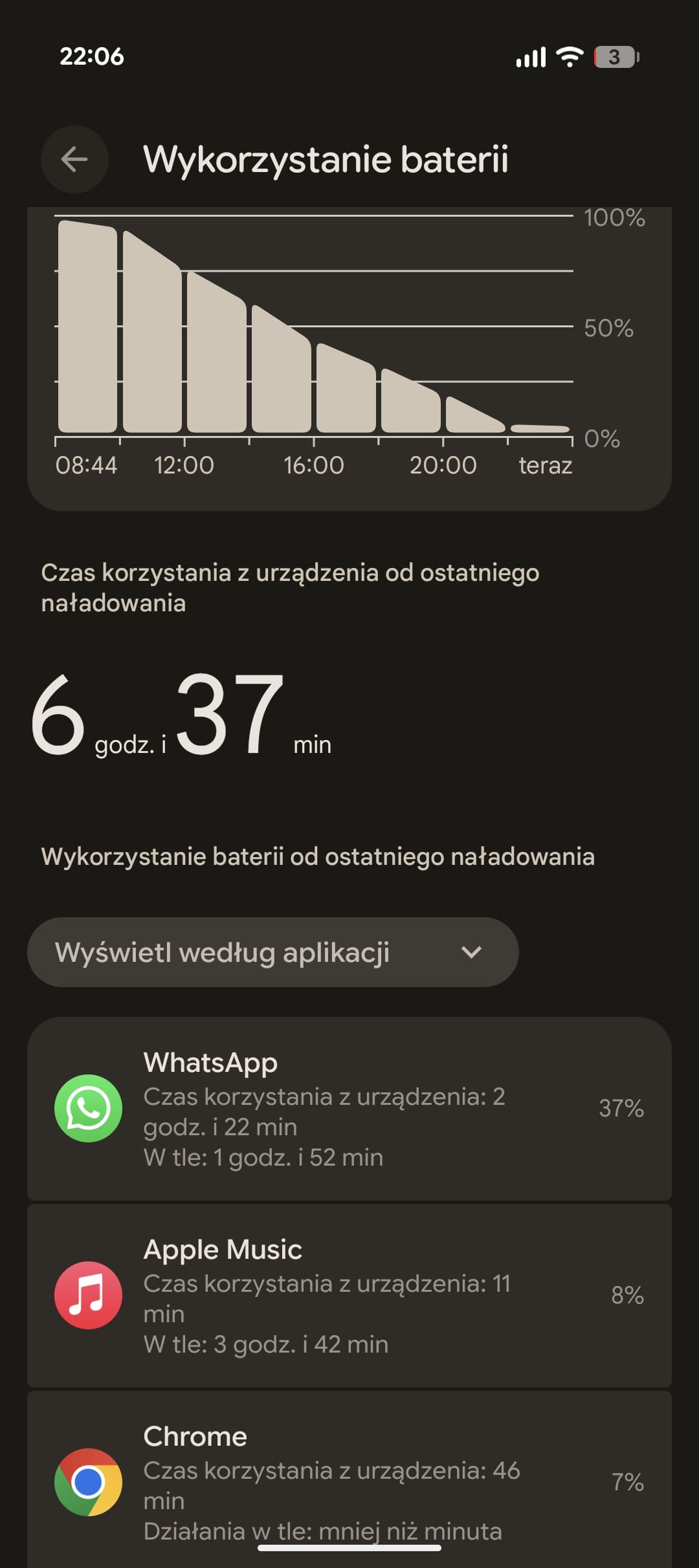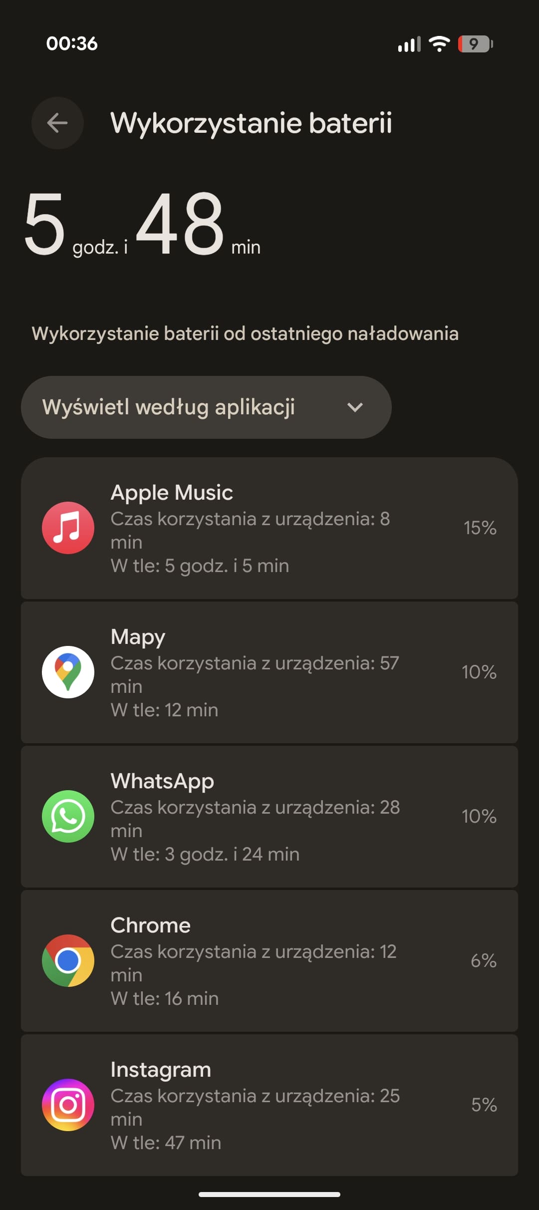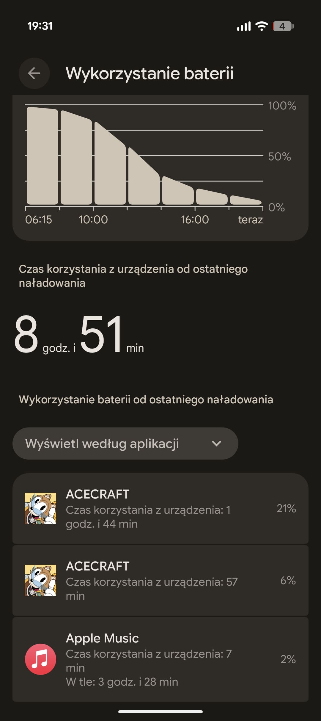 Patrząc na moje użytkowanie Pixela 10 osobiście nie wierzę, żeby po 300-400 cykli ładowania można było osiągać jakieś szczególnie długie czasy pracy, ale muszę przyznać, że testowany egzemplarz naprawdę mnie zaskoczył. Odpinałem go po nocnym ładowaniu do 100% gdzieś po 6:00 rano, by z satysfakcją stwierdzić, że smartfon wytrzymuje z powodzeniem do godziny 23:00 lub 24:00. I te wyniki były powtarzalne, więc dodatkowe miliamperogodziny pojemności baterii naprawdę zdziałały tutaj cuda – przynajmniej w porównaniu do mojego rocznego Pixela 9.